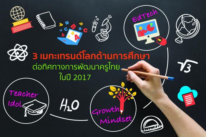 ดร.ไกรยส ภัทราวาท ผู้เชี่ยวชาญด้านนโยบายเศรษฐศาสตร์การศึกษา สำนักงานส่งเสริมสังคมแห่งการเรียนรู้และคุณภาพเยาวชน (สสค.) กล่าวว่า ในปี 2560 ซึ่งรัฐบาลประกาศให้เป็นปีแห่งการปฏิรูปประเทศ ครูจึงเป็นหัวใจสำคัญของการพัฒนากำลังคนให้เดินหน้าไปสู่ไทยแลนด์ 4.0 ในวันครูแห่งชาติ สสค.จึงนำเสนอ 3 เมกะเทรนด์โลกด้านการศึกษาที่น่าจะเป็นประโยชน์ต่อทิศทางการพัฒนาครูไทยในปี 2017 ดังนี้ 1) การใช้เทคโนโลยีสารสนเทศด้านการศึกษา หรือ “EdTech” มาปลดพันธนาการคืนครูสู่ห้องเรียน ให้ครูมี “อิสระ” ทุ่มเทพัฒนาการสอนได้อย่างเต็มที่ โดย EdTech จะทำหน้าแบ่งเบาภาระการบริหารจัดการภารกิจนอกเหนือการสอน อาทิ การลดภาระเอกสารงานธุรการ การประเมินผลการเรียน การจัดการข้อมูลนักเรียน ซึ่งผลวิจัยล่าสุดจากผลการสอบ PISA 2015 หรือรายงานของคณะกรรมการแห่งชาติเพื่อพัฒนาการเรียนการสอนของสหรัฐอเมริกา (NCTAF) ระบุตรงกันว่าการมอบหมายภารกิจนอกเหนือการสอนให้แก่ครูส่งผลเสียต่อคุณภาพการเรียนการสอนของครูและผลสัมฤทธิ์ทางการเรียนรู้ของนักเรียน โดยเสนอให้กระทรวงศึกษาธิการและหน่วยงานที่เกี่ยวข้องคืนเวลาและอิสระให้แก่ครูในการมุ่งมั่นพัฒนาคุณภาพการเรียนการสอนในชั้นเรียนมากขึ้นด้วยการใช้เทคโนโลยีมาแบ่งเบาภาระครู 2) การสร้างและปลูกฝังแนวคิด Growth Mindset ให้กับครู จากทฤษฎีด้านจิตวิทยาที่มีการวิจัยกว่า 40 ปีที่เชื่อว่า อัจฉริยะหรือพรสวรรค์ไม่สำคัญเท่ากับความเชื่อมั่นที่ว่าสามารถพัฒนาศักยภาพของตนเองให้ดีขึ้นกว่าเดิมได้ ฉะนั้นในการพัฒนาครูรุ่นใหม่ให้มี Growth Mindset ที่ดี ก็จะส่งผลต่อผลสัมฤทธิ์การเรียนรู้และกรอบแนวคิดในการพัฒนาของศิษย์ ทั้งยังนำไปสู่การสร้างความสัมพันธ์ทีดีให้ครูรักเด็กและเด็กรักครู 3) ทำให้อาชีพครูกลายเป็นเสาหลักในการพัฒนาประเทศ เมื่อสังเคราะห์ข้อมูลจากประเทศที่ประสบความสำเร็จด้านการศึกษา อาทิ ฟินแลนด์ สิงคโปร์ หรือเกาหลีใต้พบว่านักเรียนนักศึกษาที่มีความรู้ความสามารถสูงที่สุดในชั้นเรียนล้วนเลือกประกอบอาชีพครูแทบทั้งสิ้น ปัจจุบันรัฐบาลไทยก็ได้นำ โครงการครูเพื่อพัฒนาท้องถิ่นหรือโครงการคุรุทายาทซึ่งเป็นหนึ่งในมาตรการที่ต้องการส่งเสริมให้เยาวชนรุ่นใหม่ที่มีความรู้ความสามารถในพื้นที่ได้รับโอกาสในการเป็นครูดีในท้องถิ่นของตนได้ เพื่อแก้ปัญหาความเหลื่อมล้ำทางการศึกษาในพื้นที่ที่ขาดครูอย่างยั่งยืนและสร้างต้นแบบครูที่ดีคืนสู่สังคม