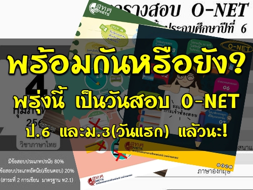 วันนี้ (3 ก.พ.60) เฟซบุ๊ค สทศ. ได้เผยแพร่ infoGraphics เพื่อเป็นการเตรียมพร้อมสำหรับนักเรียน ป.6 และ ม.3(วันแรก) ที่จะสอบ O-NET ในวันพรุ่งนี้ 4 ก.พ.2560 เรียงลำดับ ดังนี้
