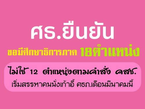 กระทรวงศึกษาธิการ ยืนยันขอมีศึกษาธิการภาค 18 ตำแหน่ง ไม่ใช่ 12 ตำแหน่งตามคำสั่ง คสช. เริ่มสรรหาคนนั่งเก้าอี้ ศธภ.เดือนมีนาคมนี้