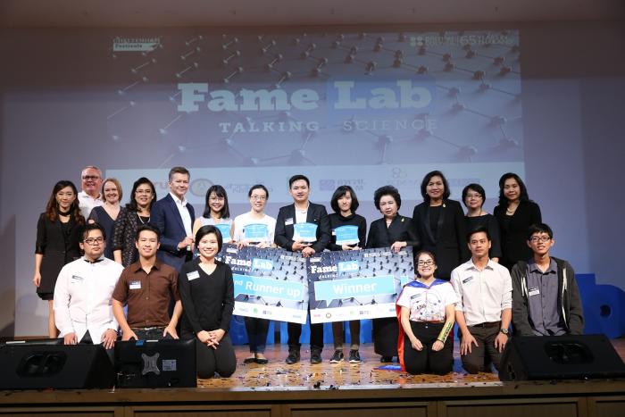 ผู้ชนะเลิศจากโครงการ FameLab คือ นาย ปริญญา ขินหนองจอก นักศึกษาคณะเภสัชศาสตร์ มหาวิทยาลัยขอนแก่น และรองชนะเลิศอันดับหนึ่งคือ ดร. สุธีรา รัตนศิรินทรวุธ อาจารย์ฝ่ายวิจัย คณะแพทยศาสตร์ จุฬาลงกรณ์มหาวิทยาลัย ส่วนรองชนะเลิศอันดับสองคือ นางสาว กมลรัตน์ คูบุบผา นักศึกษาคณะวิทยาศาสตร์ มหาวิทยาลัยขอนแก่น และผู้ชนะเลิศรางวัลป็อบปูล่าโหวต คือ นางสาว อรณี ศรีใชยพล นักศึกษา คณะวิทยาศาสตร์ มหาวิทยาลัยขอนแก่น