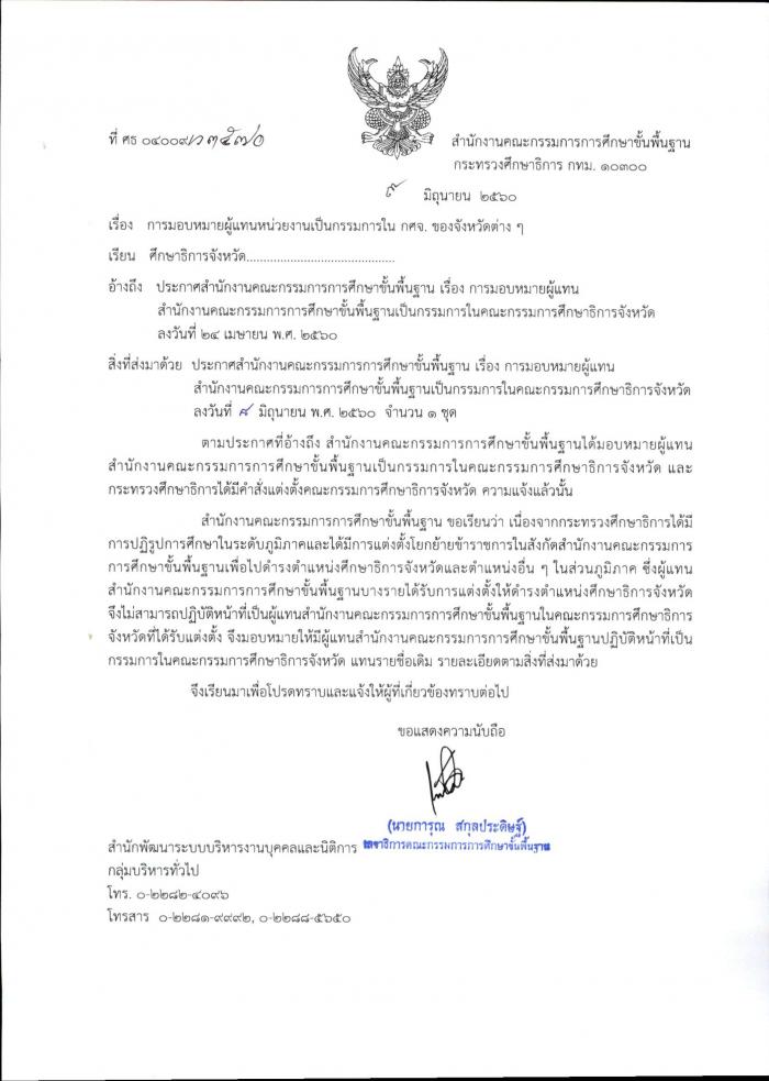 ที่ ศธ 04009/ว 3570 เรื่องการมอบหมายผู้แทนหน่วยงานเป็นกรรมการใน กศจ. ของจังหวัดต่าง ๆ