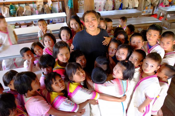 “เด็กๆ ที่นี่เราไม่เน้นเรื่องความเก่ง แต่เราเน้นเรื่องของการเป็นคนดี เพราะวันนี้ในการจัดการเรียนการสอนหรือหลักสูตรเรามักจะไม่ไม่เน้นคน ดี เน้นแต่คนเก่ง แม้ว่าความเก่งจะใช้ประโยชน์ได้จริง แต่ถ้าเก่งแล้วไม่ดีหรือเก่งแล้วโกงจะมีประโยชน์อะไร แต่สิ่งที่สำคัญคือเขาต้องรู้ตัวเองว่าเขาเป็นคนไทยไม่ใช่กะเหรี่ยง กระเหรี่ยงมันเป็นแค่เชื้อชาติเฉยๆ แต่ทุกคนเป็นคนไทย และความรู้ที่เขาได้รับถ้าเกิดเขาไม่เรียนต่อเขาก็จะอยู่ในสังคมได้โดยไม่ถูกใครมาหลอกลวง เพราะคนที่มีความรู้เขาจะไม่ถูกหลอก” ครูนฤมลอธิบาย