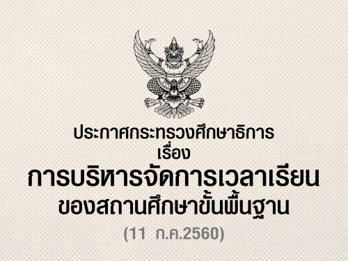 ประกาศกระทรวงศึกษาธิการ เรื่อง การบริหารจัดการเวลาเรียนของสถานศึกษาขั้นพื้นฐาน