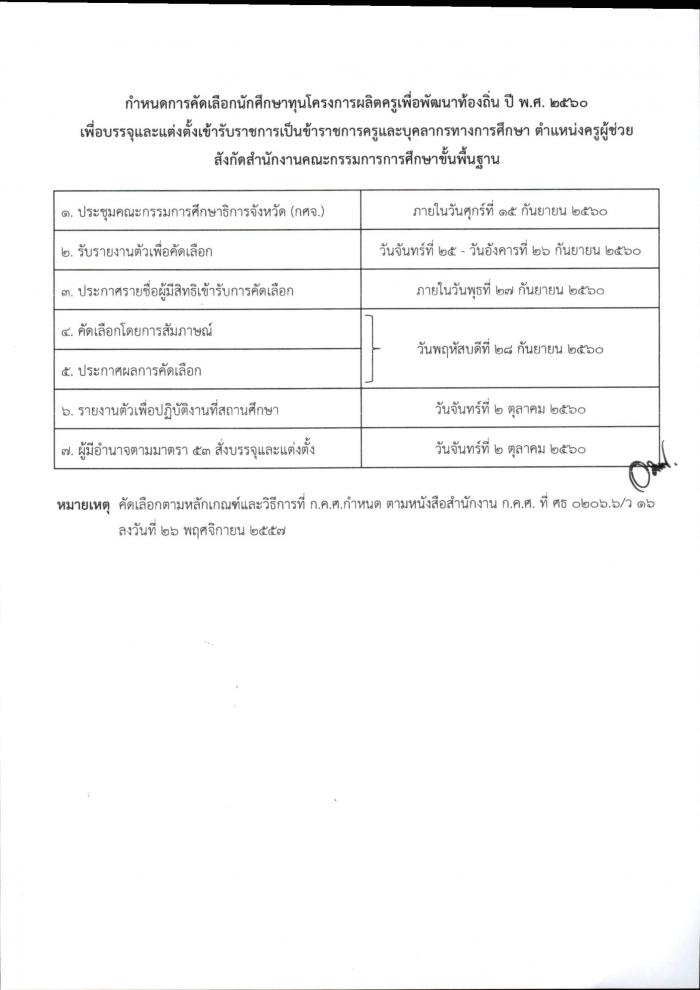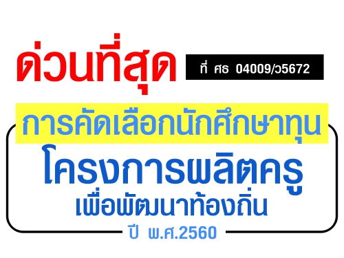 ด่วนที่สุด ที่ ศธ 04009/ว5672 การคัดเลือกนักศึกษาทุนโครงการผลิตครูเพื่อพัฒนาท้องถิ่น ปี พ.ศ.2560