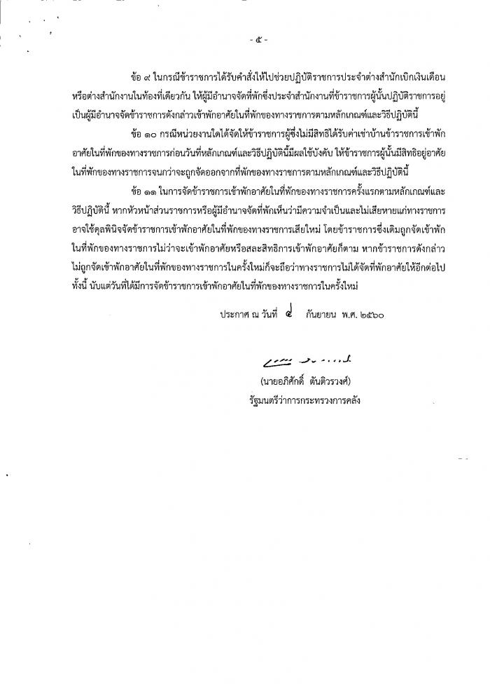 หลักเกณฑ์และวิธีปฏิบัติในการจัดข้าราชการเข้าพักอาศัยในที่พักของทางราชการ พ.ศ. 2560