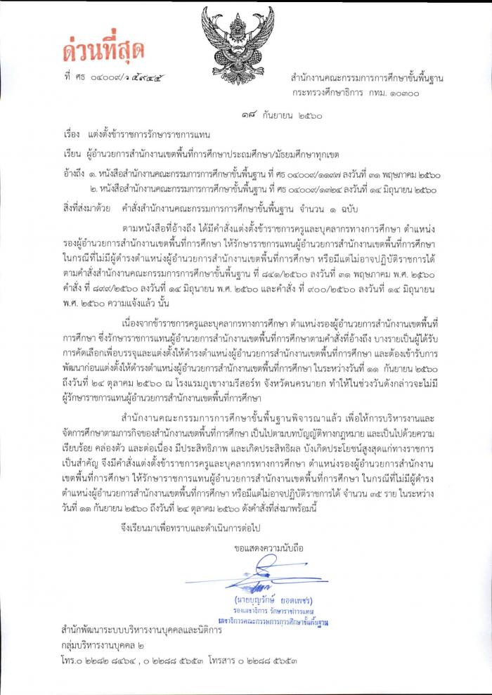 ด่วนที่สุด ที่ ศธ 04009/ว 5945 ลงวันที่ 18 กันยายน 2560 เรื่อง แต่งตั้งข้าราชการรักษาราชการแทน