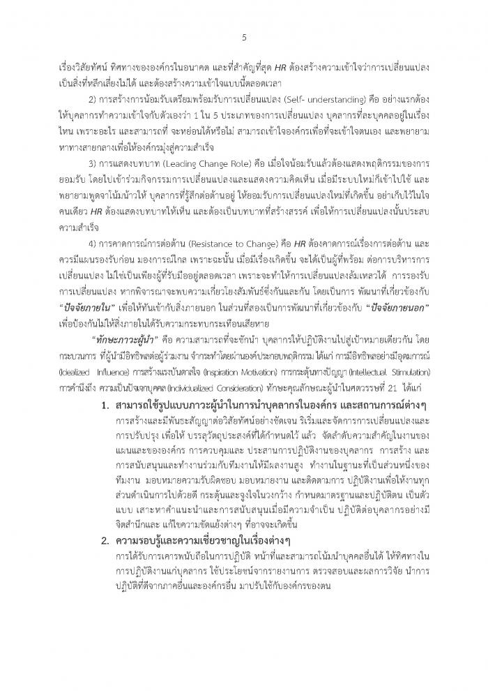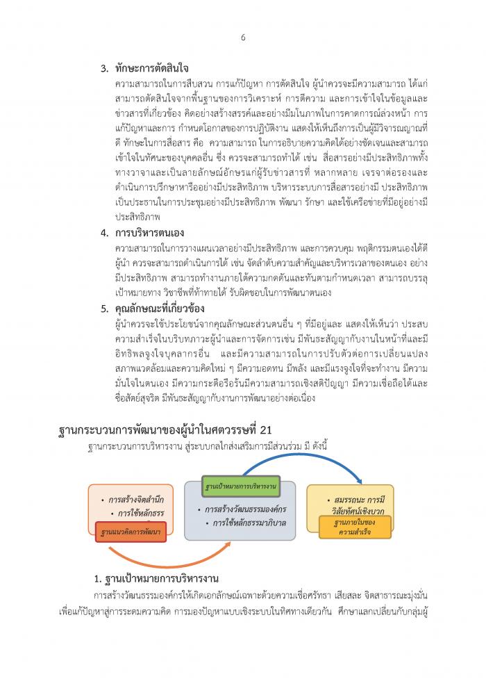 ผู้นำในศตวรรษที่ 21 กับการเปลี่ยนผ่าน เป็นภารกิจการนำพาบุคลากรในองค์กร เดินทางจากที่หนึ่งไปยังอีกที่หนึ่งสู่การเป็น “ผู้ก่อให้เกิดการเปลี่ยนแปลงที่ดีขึ้นตามวิสัยทัศน์ขององค์กรอันยิ่งใหญ่” ผู้นำที่จะประสบความสำเร็จ จำเป็นต้องให้ความสำคัญกับการพัฒนา ตระหนักรู้ในหน้าที่ และความรับผิดชอบ ความ