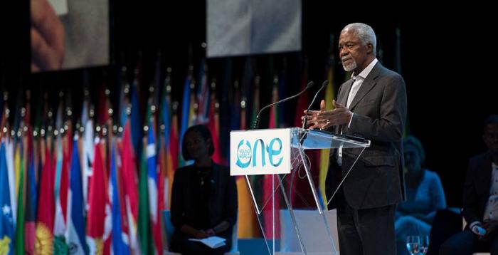 ด้าน “โคฟี อันนัน” อดีตรองเลขาธิการสหประชาชาติ กล่าวว่า วันนี้เราอยู่ในช่วงเวลาที่โลกกำลังมีปัญหามากที่สุด ข้อมูลจากการสำรวจเยาวชนกว่า 2 พันคนทั่วโลก พบว่าร้อยละ 60 ต้องอยู่อาศัยกับความหวาดกลัวจากปัญหาการก่อการร้าย ความขัดแย้ง การใช้อาวุธ การแบ่งขั้วแบ่งฝักฝ่าย และการเข่นฆ่ากัน โดยพบว่ารากฐานของความทุกข์ทรมานของคนในปัจจุบันก็คือความขัดแย้งที่รุนแรง ซึ่งนอกจากจะขโมยชีวิตและความเป็นอยู่ของผู้คนไปแล้วยังทำลายระบบเศรษฐกิจและสังคมที่มีอยู่อีกด้วย