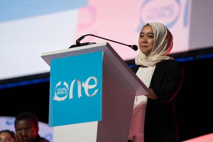“เราสามารถสร้างสันติภาพได้ด้วยการร่วมมือกัน จงอย่าสูญสิ้นความหวัง ความหวังที่จะมีอนาคตที่สันติสุข พวกเราผู้แทนเยาวชน One Young World ทุกคนขอจงร่วมมือกันใช้โอกาสนี้ร่วมกันออกแบบอนาคตของโลกที่จะไม่มีเยาวชนต้องสูญเสียครอบครัวไปกับความขัดแย้งที่ไม่จำเป็นอีกต่อไป”