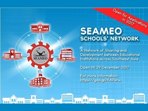 สำนักเลขาธิการซีมีโอประกาศรับสมัครสถานศึกษาทุกระดับเข้าร่วมโครงการ “SEAMEO Schools’ Network in 2017” (ชื่อเดิม SEAMEO 50 x 3 Schools’ Network) ระหว่างวันที่ 1 ตุลาคม – 29 ธันวาคม 2560 โดยมีวัตถุประสงค์เพื่อพัฒนาขีดความสามารถของผู้บริหารสถานศึกษา ครู อาจารย์ นักเรียนและนักศึกษา ผ่านกิจกรรมหลายรูปแบบ ได้แก่ การฝึกอบรมออนไลน์ การสนทนาแบบ face-to-face รวมทั้งการพัฒนาเครือข่ายความร่วมมือระหว่างโรงเรียนต่างๆ ในภูมิภาคเอเชียตะวันออกเฉียงใต้