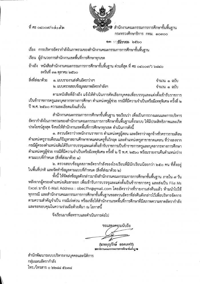 ที่ ศธ 04009/ว 8042 การบริหารอัตรากำลังในภาพรวมของสำนักงานคณะกรรมการการศึกษาขั้นพื้นฐาน