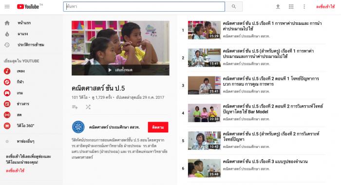 สาขาวิชาคณิตศาสตร์และฝ่ายนวัตกรรมและเทคโนโลยีเพื่อการเรียนรู้ สถาบันส่งเสริมการสอนวิทยาศาสตร์และเทคโนโลยี (สสวท.) โดยโครงการยกระดับการเรียนการสอนคณิตศาสตร์ จัดทำวีดิทัศน์ประกอบการสอนคณิตศาสตร์ชั้น ป.5 สอนโดยครูจาก รร.สาธิตจุฬาลงกรณ์มหาวิทยาลัย ฝ่ายประถม รร.สาธิต มศว.ประสานมิตร (ฝ่ายประถม) และ รร.สาธิตแห่งมหาวิทยาลัยเกษตรศาสตร์