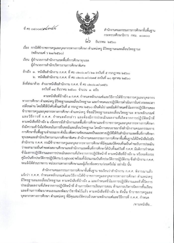 ที่ศธ ๐๔๐๐๙/ว๘๓๔๘ การให้ข้าราชการครูและบุคลากรทางการศึกษา ตำแหน่งครู มีวิทยฐานะและเลื่อนวิทยฐานะ(หลักเกณฑ์ ว ๒๑/๒๕๖๐)