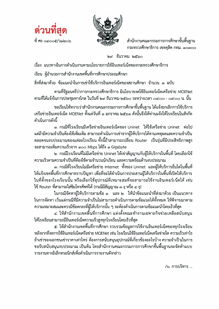 แนวทางในการดำเนินงานตามนโยบายการใช้อินเทอร์เน็ตของกระทรวงศึกษาธิการ