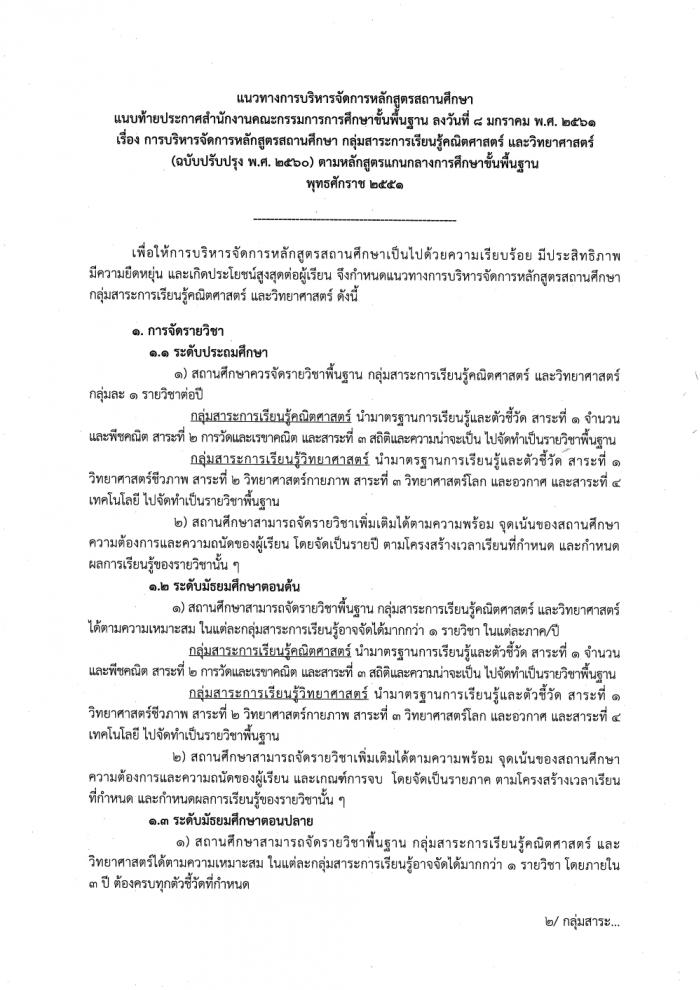 วันที่ 10 มกราคม 2560 เว็บไซต์ สำนักวิชาการและมาตรฐานการศึกษา ได้เผยแพร่ข้อมูล คำสั่ง เรื่อง ให้ใช้มาตรฐานและตัวชี้วัด กลุ่มสาระคณิตศาสตร์ วิทยาศาสตร์ และภูมิศาสตร์ และ หลักสูตรกลุ่มสาระคณิตศาสตร์ วิทยาศาสตร์ และภูมิศาสตร์ (ฉบับปรับปรุง พ.ศ. 2560) โดยมีรายละเอียด ดังนี้