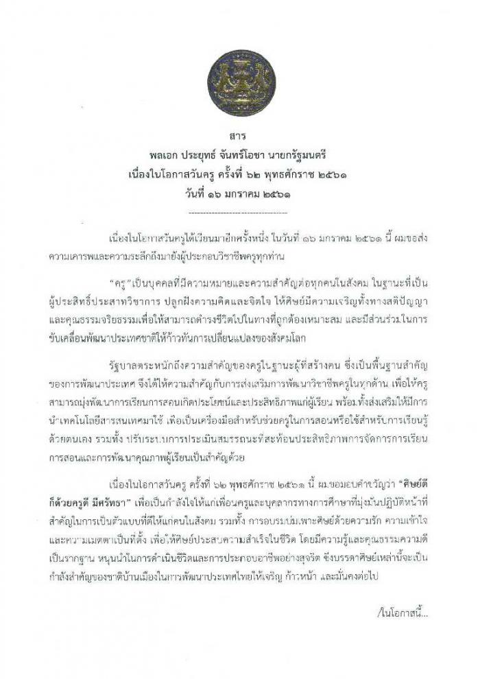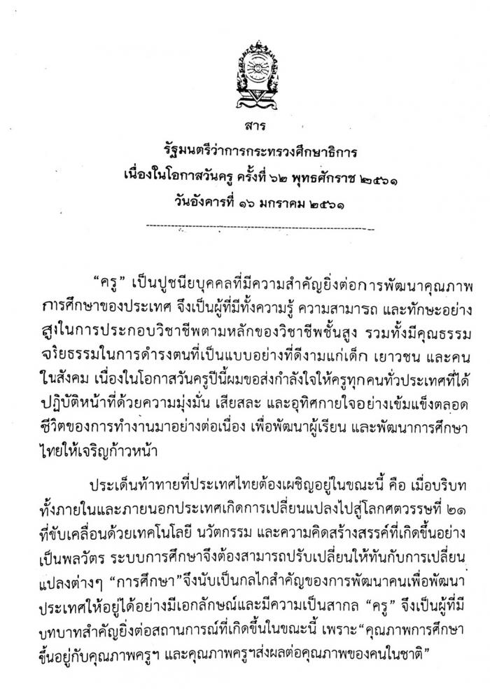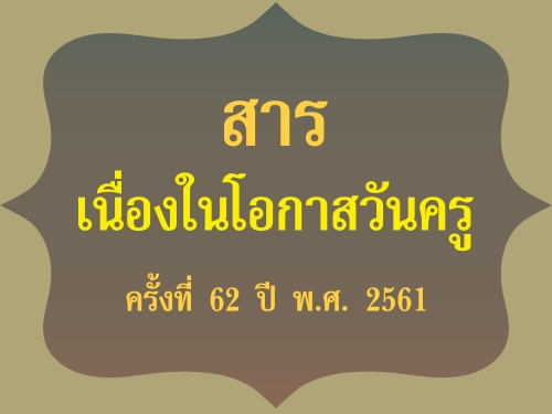 สารเนื่องในโอกาสวันครู ครั้งที่ 62 ปี พ.ศ. 2561สารวันครู ครั้งที่ 62 ปีพุทธศักราช 2561สารวันครู 2561สารวันครู61สารวันครู