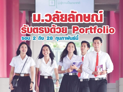 มหาวิทยาลัยวลัยลักษณ์รับสมัครนักศึกษา ประเภทรับตรงทั่วประเทศด้วย Portfolio รอบที่ 2 ผ่านทางระบบอินเทอร์เน็ต http://entry.wu.ac.th จำนวน 2,590 คน ตั้งแต่บัดนี้ถึงวันที่ 28 กุมภาพันธ์ 2561