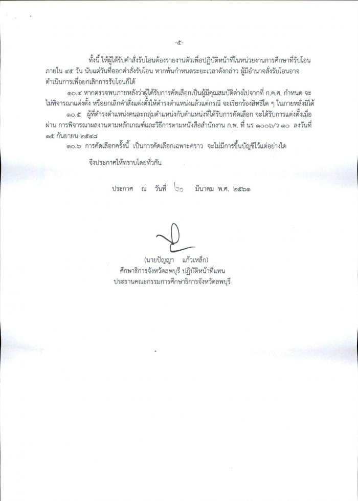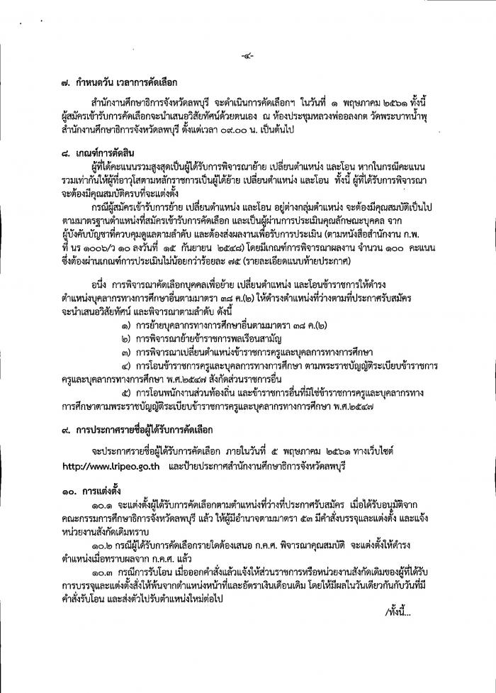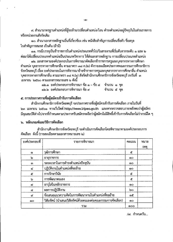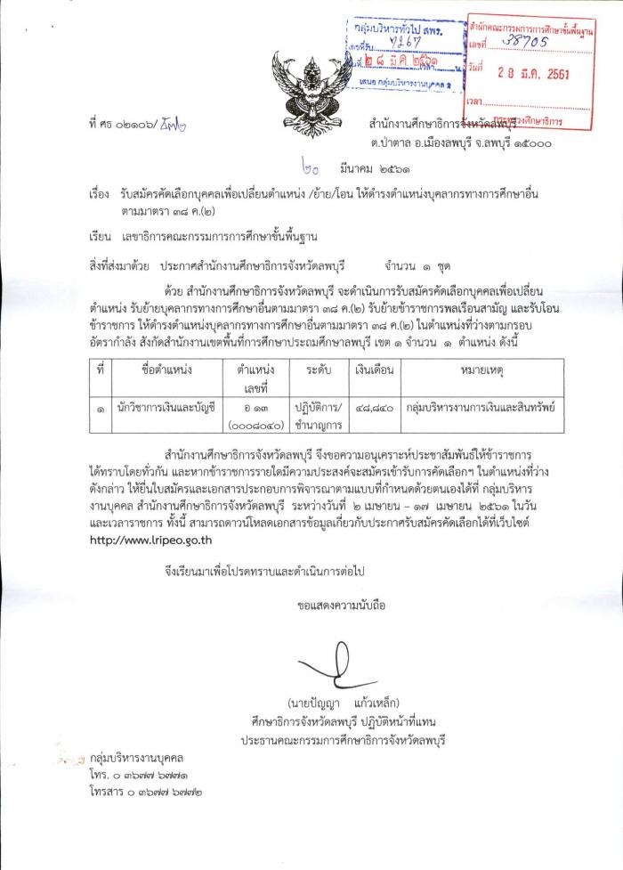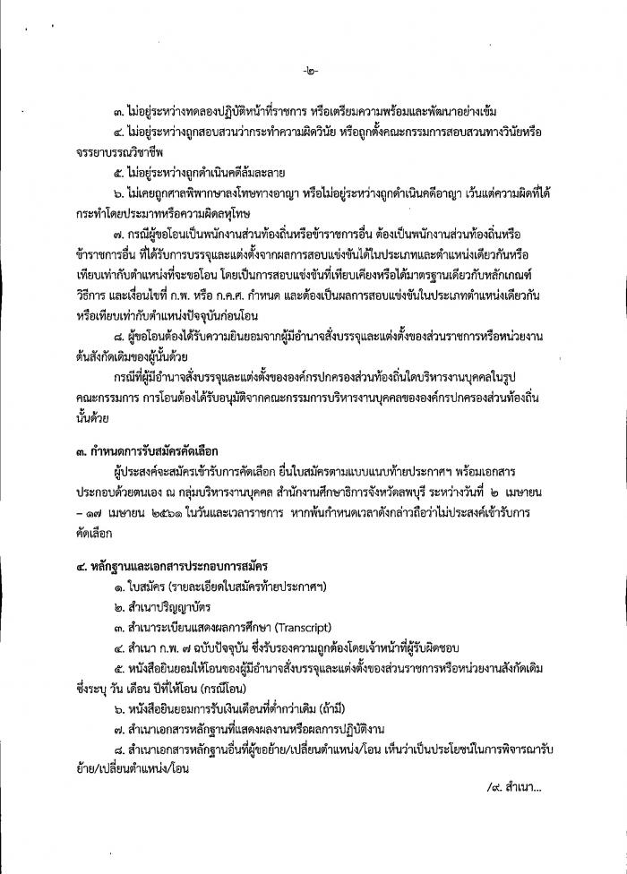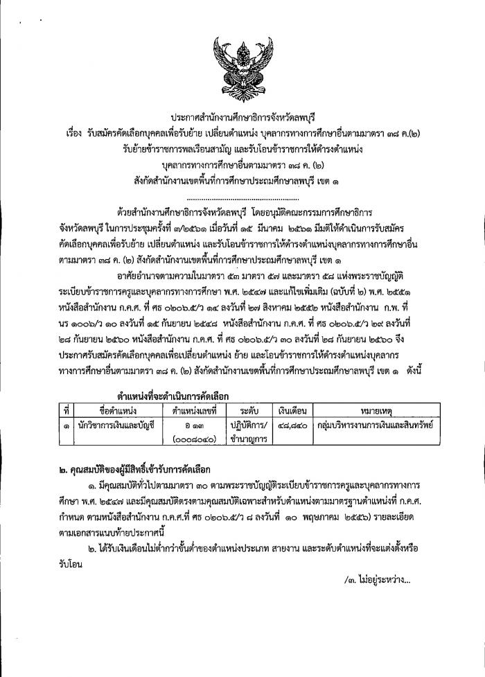 ที่ ศธ 02106/572 ศธจ.ลพบุรี รับสมัครคัดเลือกเพื่อเปลี่ยนตำแหน่วง/ย้าย/โอน ให้ดำรงตำแหน่งบุคลากรทางการศึกษาอื่น ตามมาตรา 38 ค.(2)