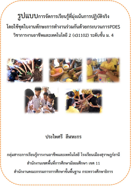 รูปแบบการจัดการเรียนรู้ที่มุ่งเน้นการปฏิบัติจริง โดยใช้ชุดใบงานทักษะการทำงานร่วมกันด้วยกระบวนการ PDES ผลงานครูประไพศรี ลีฬหะกร