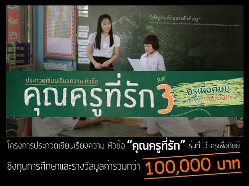 โครงการประกวดเขียนเรียงความ หัวข้อ “คุณครูที่รัก” รุ่นที่ 3 ครูเพื่อศิษย์ ชิงทุนการศึกษาและรางวัลมูลค่ารวมกว่า 100,000 บาท