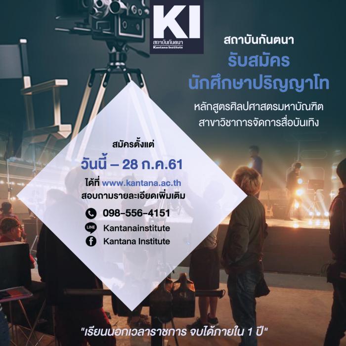 “Deliver Future to be the Best Entertainment Media Professional” ให้คุณได้เรียนรู้และร่วมแชร์ประสบการณ์กับนักวิชาชีพวงการสื่อบันเทิงไทย ที่จะมาถ่ายทอดประสบการณ์จริงแก่นักศึกษาทุกคนอย่างใกล้ชิด สถาบันกันตนา เปิดรับสมัครเข้าศึกษาต่อในระดับปริญญาโท ปีการศึกษา 2561 หลักสูตรศิลปศาสตรมหาบัณฑิต สาขาการจัดการสื่อบันเทิง เรียนนอกเวลาราชการ และจบการศึกษาได้ภายในระยะเวลา 1 ปี เท่านั้น!