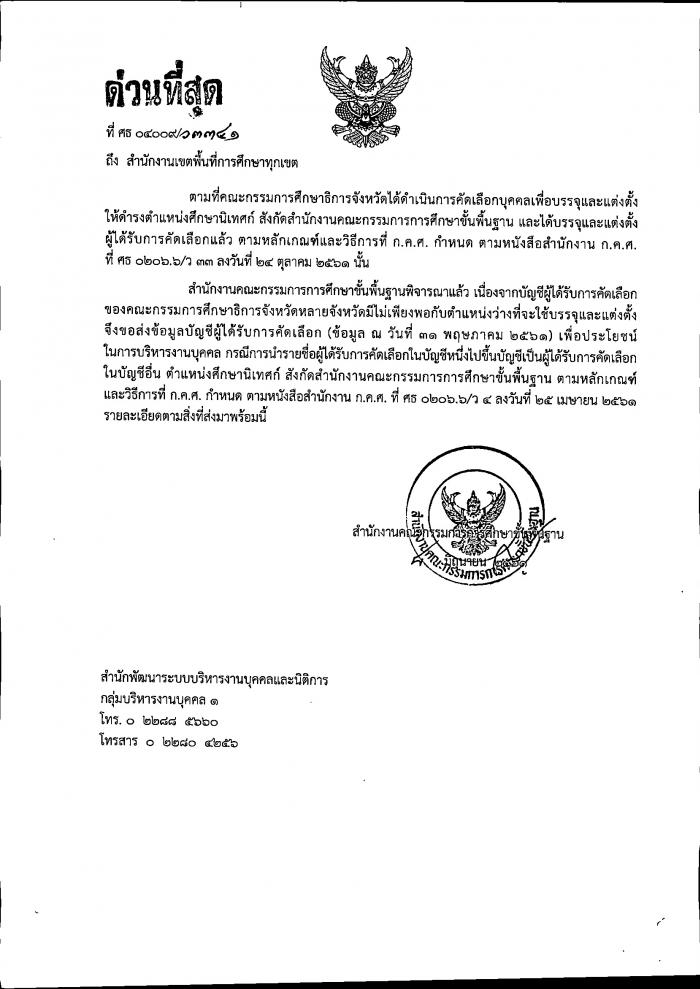 สำนักงานคณะกรรมการการศึกษาขั้นพื้นฐาน มีหนังสือ ด่วนที่สุด ที่ ศธ 04009/ว 3340 - ว 3341 ถึง สำนักงานศึกษาธิการจังหวัดทุกจังหวัดและสำนักงานเขตพื้นที่การศึกษาทุกเขต เพื่อส่งข้อมูลผู้ได้รับการคัดเลือกเพื่อบรรจุและแต่งตั้งให้ดำรงตำแหน่งศึกษานิเทศก์ สพฐ. ข้อมูล ณ วันที่ 31 พ.ค.61 เพื่อประโยชน์ในการบริหารงานบุคคล กรณีการนำรายชื่อผู้ได้รับการคัดเลือกในบัญชีหนึ่งไปขึ้นบัญชีเป็นผู้ได้รับการคัดเลือกบัญชีอื่น ตำแหน่งศึกษานิเทศก์