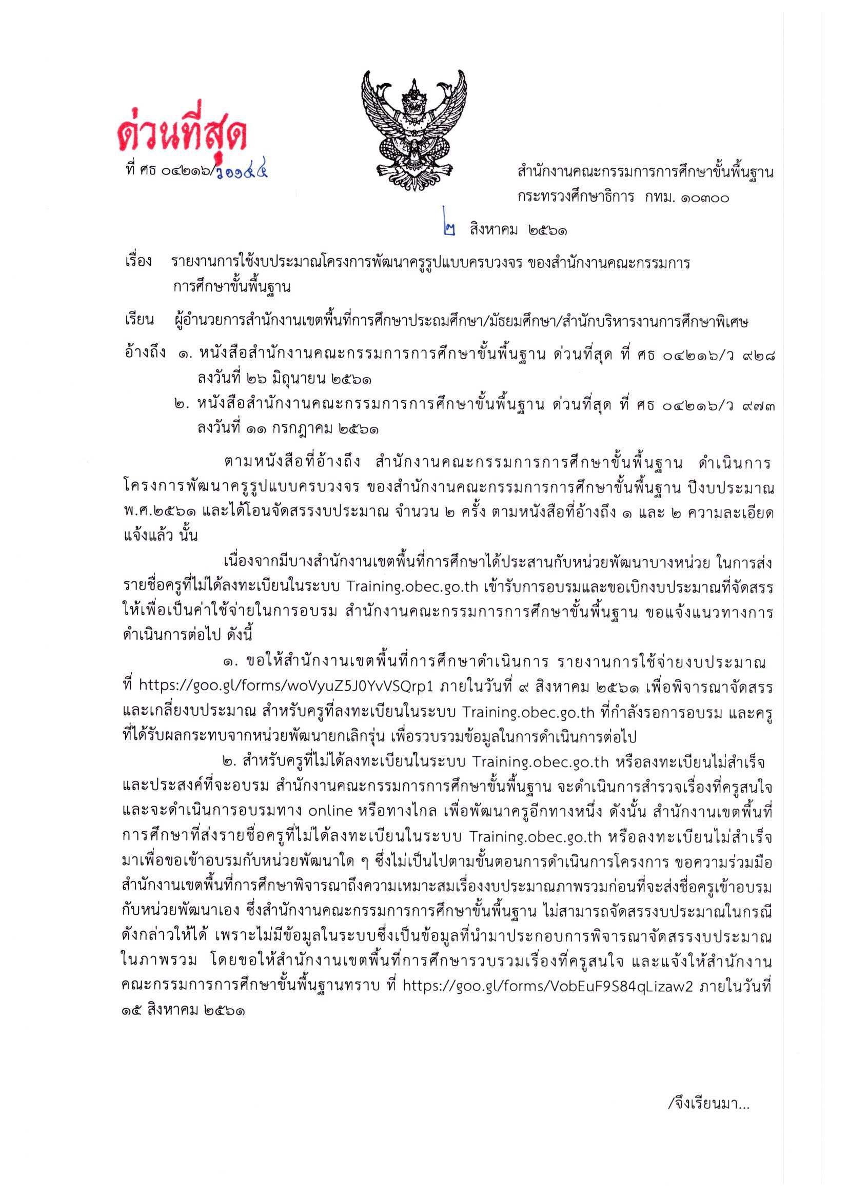 สำรวจเรื่องที่ต้องการอบรมพัฒนา นอกเหนือจากในระบบ training obec (สพท. สำรวจแล้วรายงาน)