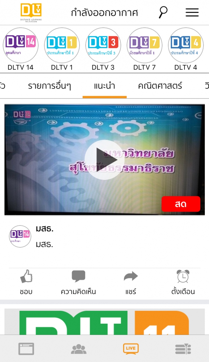 เมื่อติดตั้งเสร็จและเข้าสู่แอพ DLTV จะเจอหน้าตาแบบนี้ เลือกใช้งานได้เลยครับ