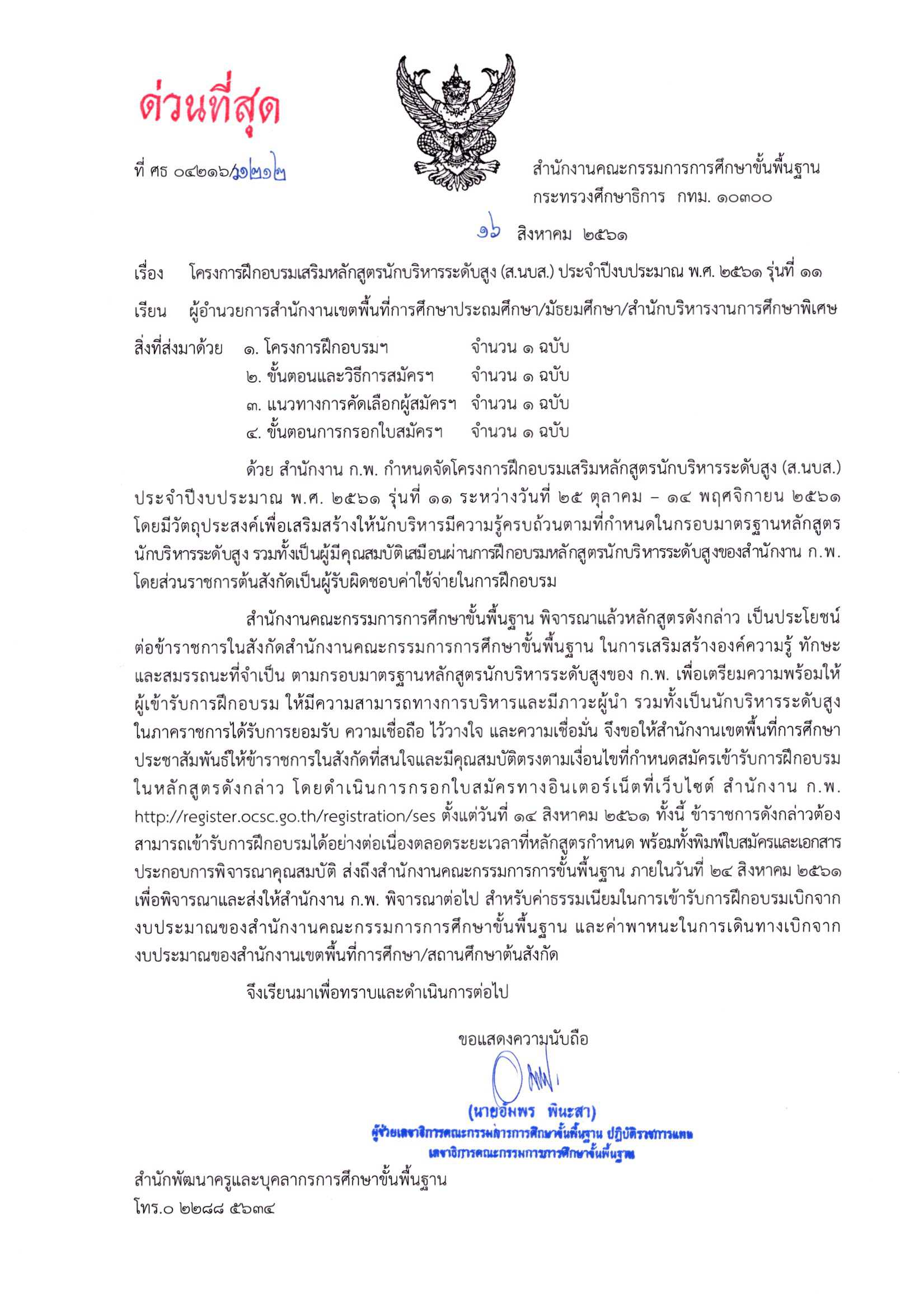 โครงการฝึกอบรมเสริมหลักสูตรนักบริหารระดับสูง (ส.นบส.) ประจำปีงบ 2561 รุ่นที่ 11