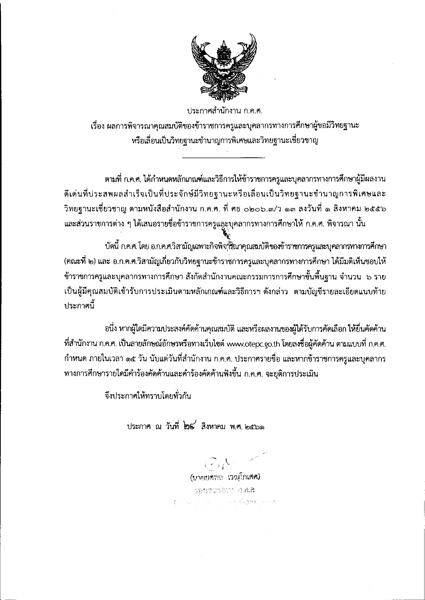 ประกาศ ณ วันที่ 24 สิงหาคม พ.ศ. 2561 (จำนวน 6 ราย)