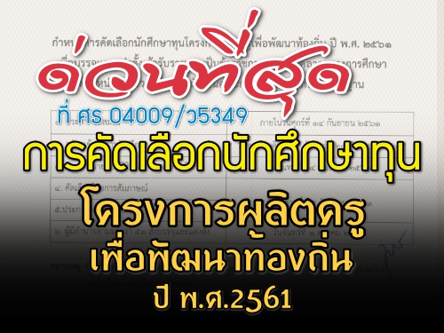 ด่วนที่สุด ที่ ศธ 04009/ว5349 การคัดเลือกนักศึกษาทุนโครงการผลิตครูเพื่อพัฒนาท้องถิ่น ปี พ.ศ.2561
