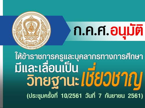 ก.ค.ศ. อนุมัติให้ข้าราชการครูและบุคลากรทางการศึกษามีและเลื่อนเป็นวิทยฐานะเชี่ยวชาญ (ประชุมครั้งที่ 10/2561 วันที่ 7 กันยายน 2561)