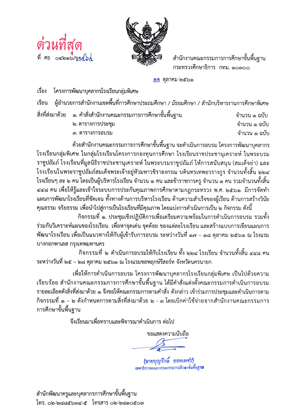 โครงการพัฒนาบุคลากรโรงเรียนกลุ่มพิเศษ