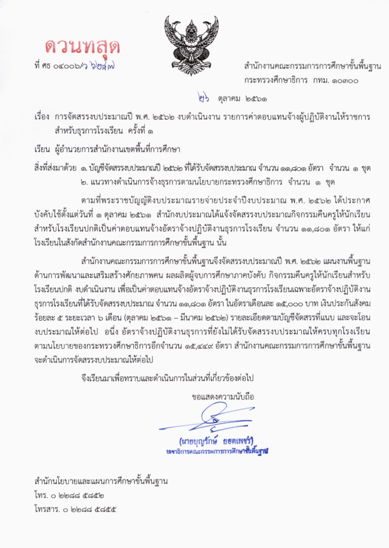 ส่วนอัตราคนครองเดิม 15,000 ที่ สพฐ. ต้องเจียดจ่ายงบประมาณ อยู่ระหว่างดำเนินจัดหางบประมาณ)