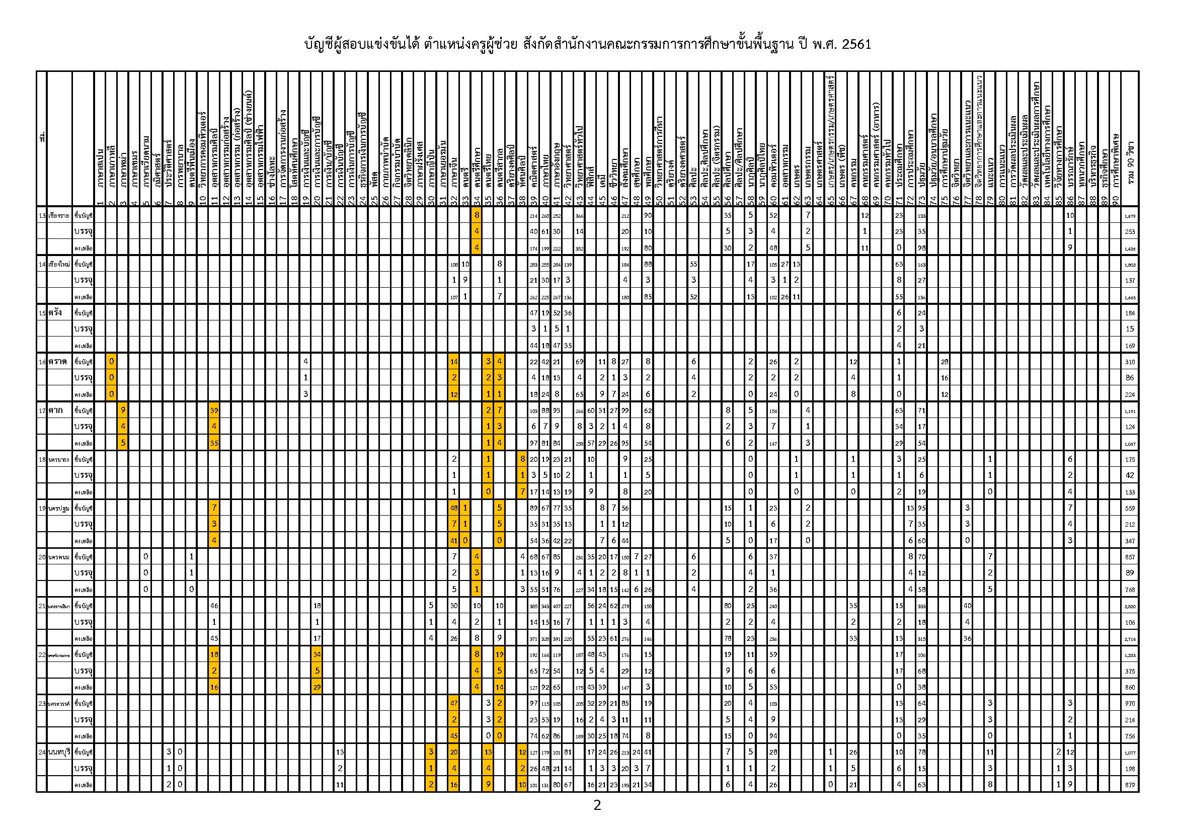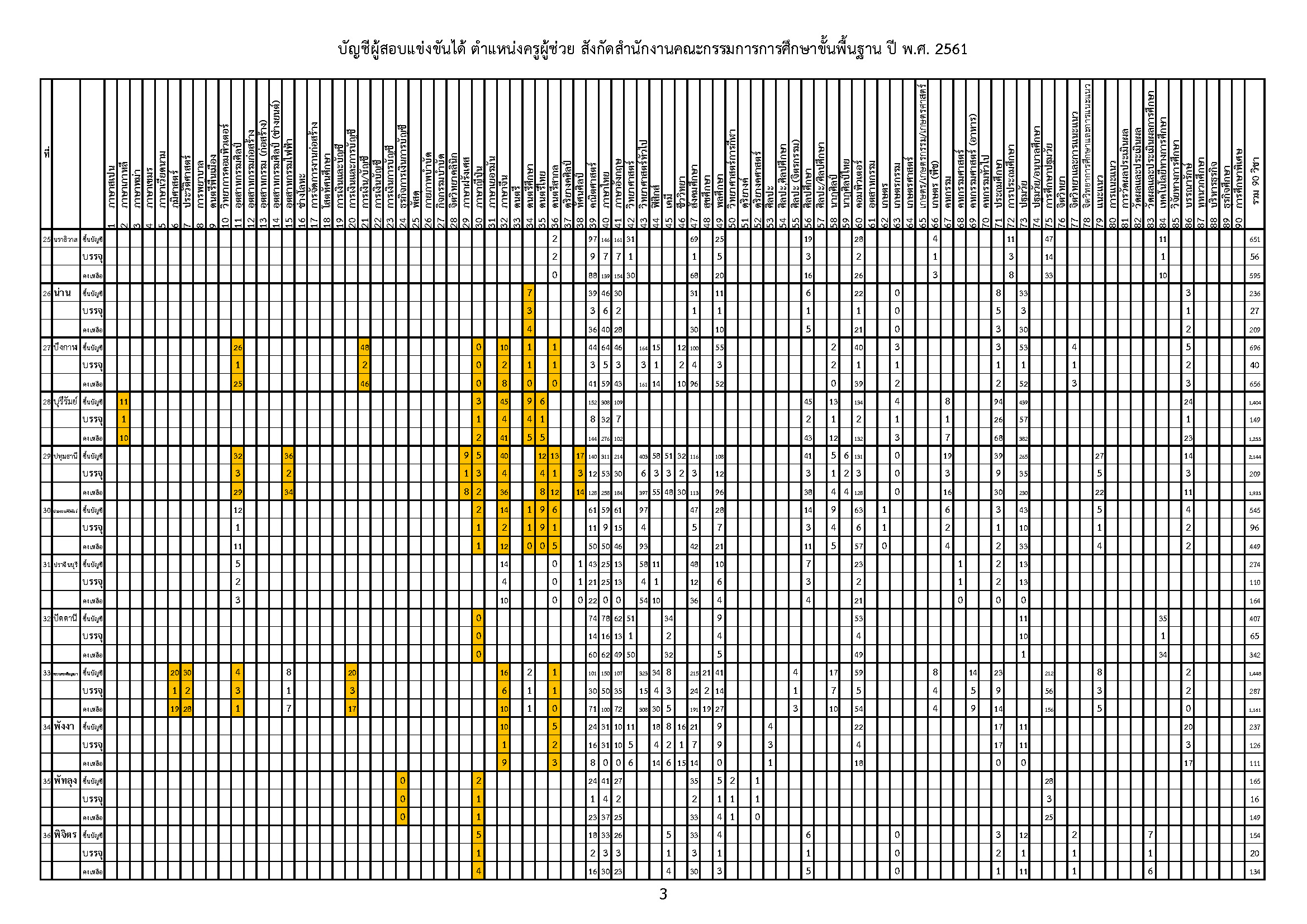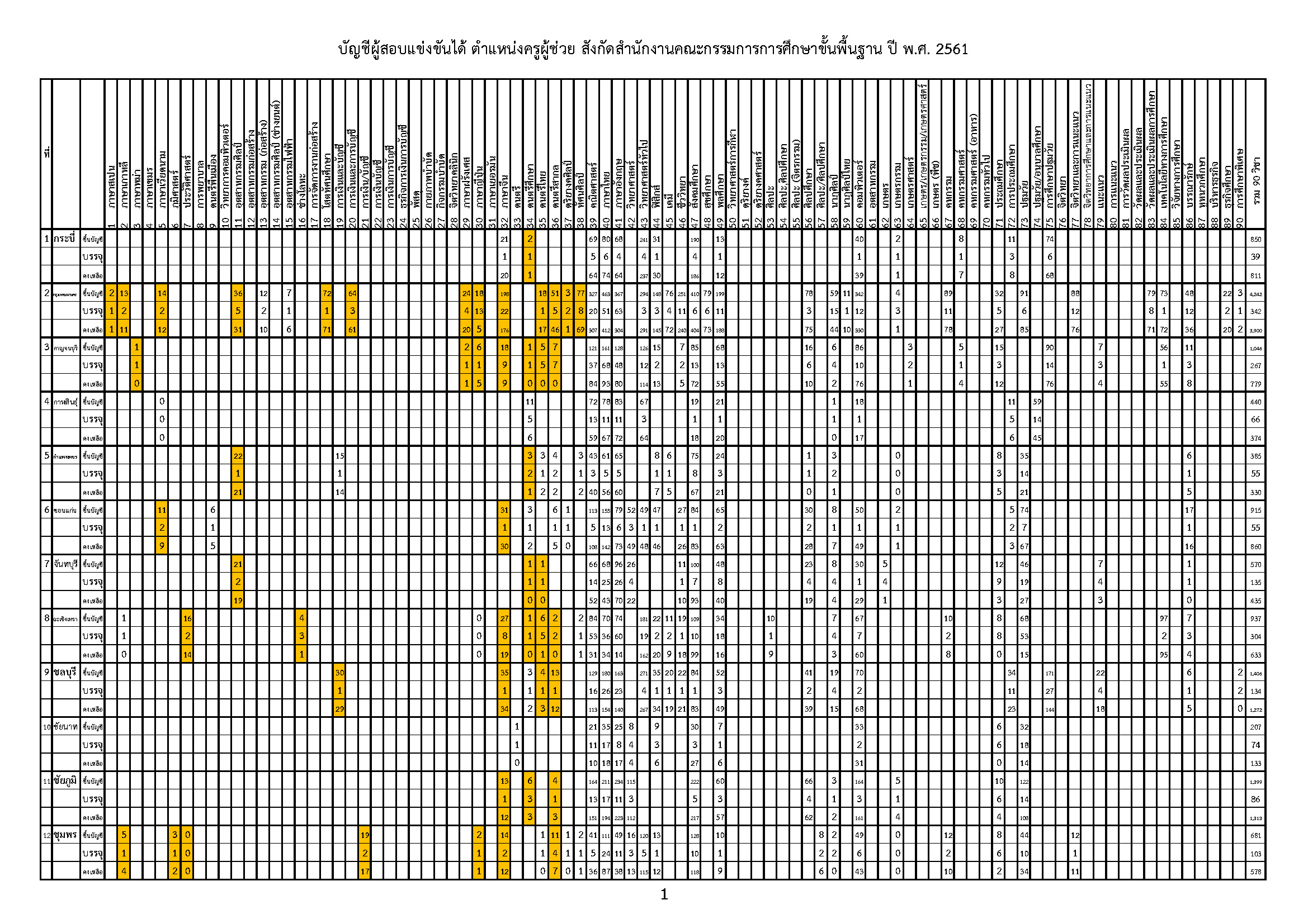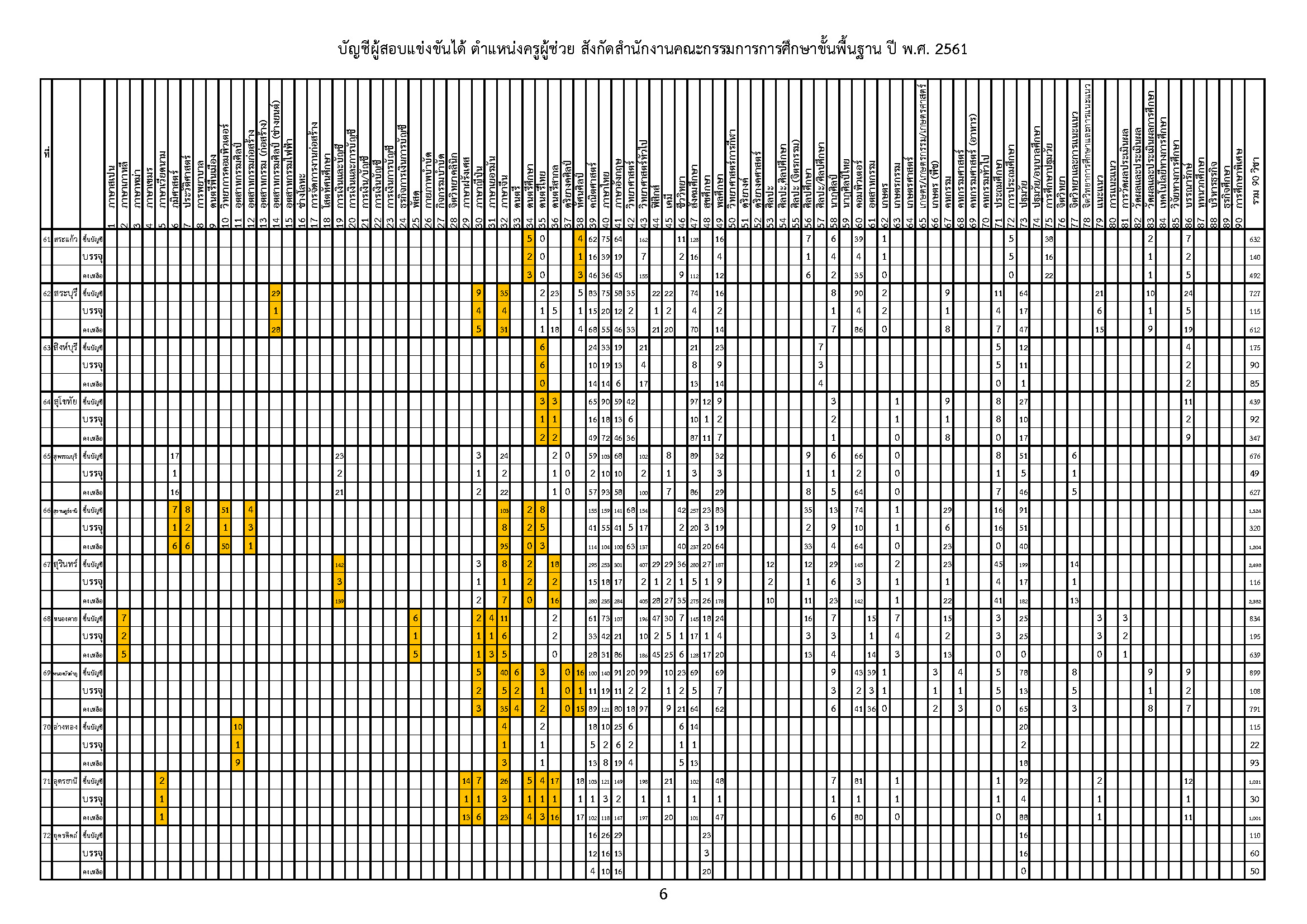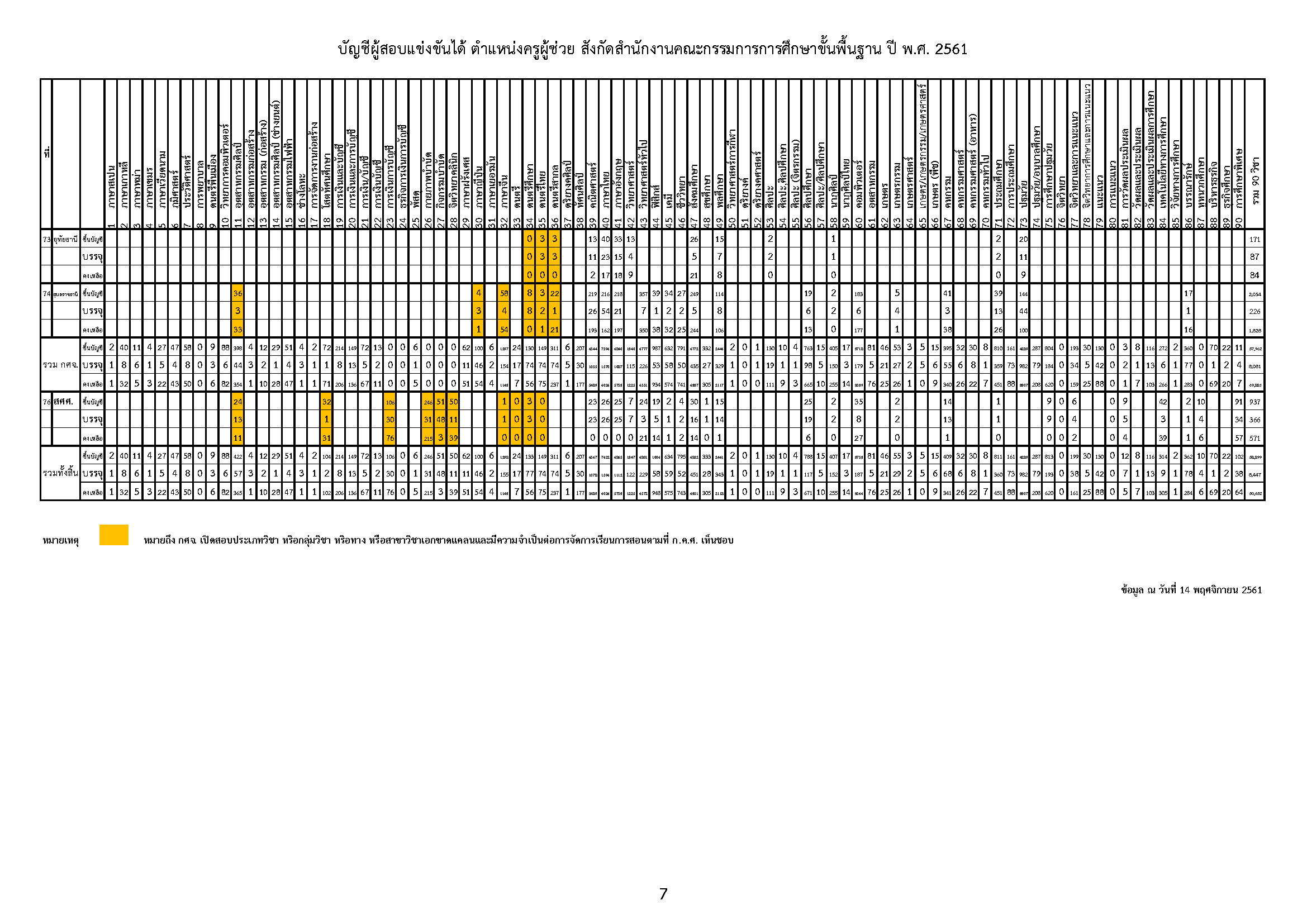 บัญชีผู้สอบแข่งขันได้ ตำแหน่งครูผู้ช่วย สังกัด สพฐ. ปี พ.ศ. 2561 (ข้อมูลวันที่ 14 พฤศจิกายน 2561)