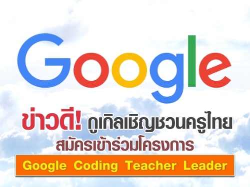 ข่าวดี!! ขอเชิญครู อาจารย์ และบุคคลากรทางการศึกษาทุกท่านเข้าร่วม "โครงการ Google Coding Teacher Leader" เพื่อเข้าสู่กระบวนการพัฒนาศักยภาพในการสอน Computational Thinking ภายใต้การสนับสนุนของ Google โดยผู้ที่ได้รับคัดเลือกจะได้รับเชิญมาเข้า Boost Camp กับ Google Engineer จาก Silicon Valley (การอบรมเป็นภาษาไทย) ในวันศุกร์ที่ 21 ธันวาคม 2561 ที่ Google Office สำนักงานใหญ่ กรุงเทพมหานคร