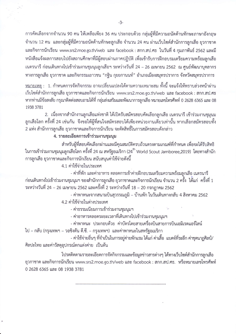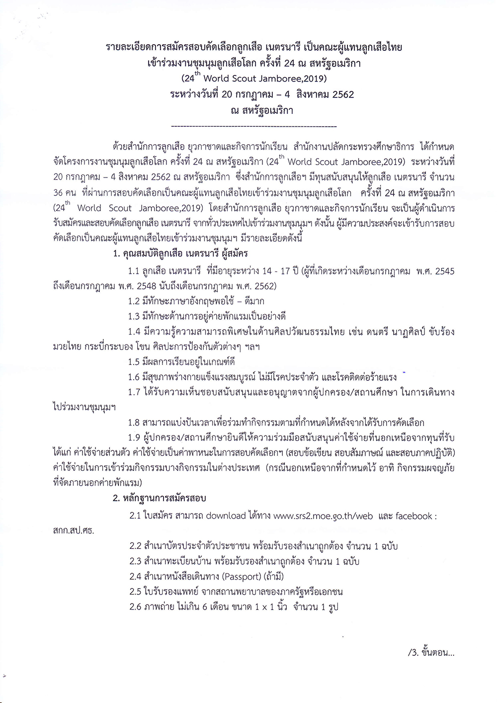 การคัดเลือก ลูกเสือ เนตรนารี เข้าร่วมงานชุมนุมลูกเสือโลกครั้งที่ 24 ณ ประเทศสหรัฐอเมริกา (24th World Scout Jamboree, 2019)