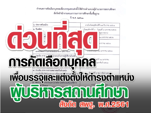 ด่วนที่สุด การคัดเลือกบุคคลเพื่อบรรจุและแต่งตั้งให้ดำรงตำแหน่งผู้บริหารสถานศึกษา สังกัดสำนักงานคณะกรรมการการศึกษาขั้นพื้นฐาน ปี พ.ศ.2561