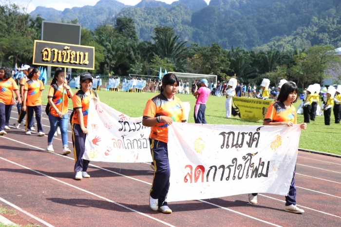 นายประพัทธ์ รัตนอรุณ เปิดเผยว่า สำนักงานเขตพื้นที่การศึกษามัธยมศึกษา เขต 14 ( พังงา ภูเก็ต ระนอง) ให้ความสำคัญและขับเคลื่อนนโยบายของรัฐบาลและกระทรวงศึกษาธิการ ในการนำคุณธรรม เข้าสู่ระบบการศึกษาสู่เด็กและเยาวชน เรื่องของการลดขยะ ลดการใช้ภาชนะโฟม และถุงพลาสติก รักสิ่งแวดล้อม โดยได้มอบนโยบายและเน้นย้ำให้โรงเรียนในสังกัดดำเนินการ จัดกิจกรรมการเรียนการสอน และกิจกรรมรณรงค์ต่างๆที่มุ่งการปลุกจิตสำนึกให้กับนักเรียน ซึ่งโรงเรียนได้นำนโยบายดังกล่าวไปสู่การปฏิบัติจัดกิจกรรมต่างๆ อาทิ การดำเนินการโครงการโรงเรียนปลอดขยะ จนได้รับการคัดเลือกเข้าร่วมแข่งขันในระดับประเทศ กิจกรรมโครงการเกาะสวยด้วยมือเราของโรงเรียนเกาะยาววิทยา นำนักเรียนเก็บขยะในชุมชนและแหล่งท่องเที่ยวภายในเกาะ การเดินรณรงค์ในโอกาสที่จัดกิจกรรมต่างๆ ของโรงเรียน เข้าไปสอดแทรก เช่น การเดินขบวนพาเหรดในการแข่งขันกีฬาของโรงเรียน เป็นต้น และในส่วนของสำนักงานเขตพื้นที่การศึกษามัธยมศึกษา เขต 14 ได้ดำเนินการ จัดกิจกรรมโครงการเยาวชนจิตอาสา สร้างจิตสำนึก เลิกใช้ภาชนะโฟมและถุงพลาสติก เป็นมิตรกับสิ่งแวดล้อม จำนวน 4 จุด 3 จังหวัด ได้แก่ โรงเรียนสตรีพังงา โรงเรียนตะกั่วป่า “เสนานุกูล” จังหวัดพังงา โรงเรียนสตรีภูเก็ต จังหวัดภูเก็ต และโรงเรียนสตรีระนอง จังหวัดระนอง กิจกรรมเหล่านี้ เป็นการเสริมสร้างความตระหนักถึงคุณค่าและความสำคัญของการลดขยะ เลิกใช้ภาชนะโฟมและถุงพลาสติก รักสิ่งแวดล้อม โดยการสร้างความรู้ความเข้าใจเกี่ยวกับปัญหาและโทษที่เกิดขึ้น
