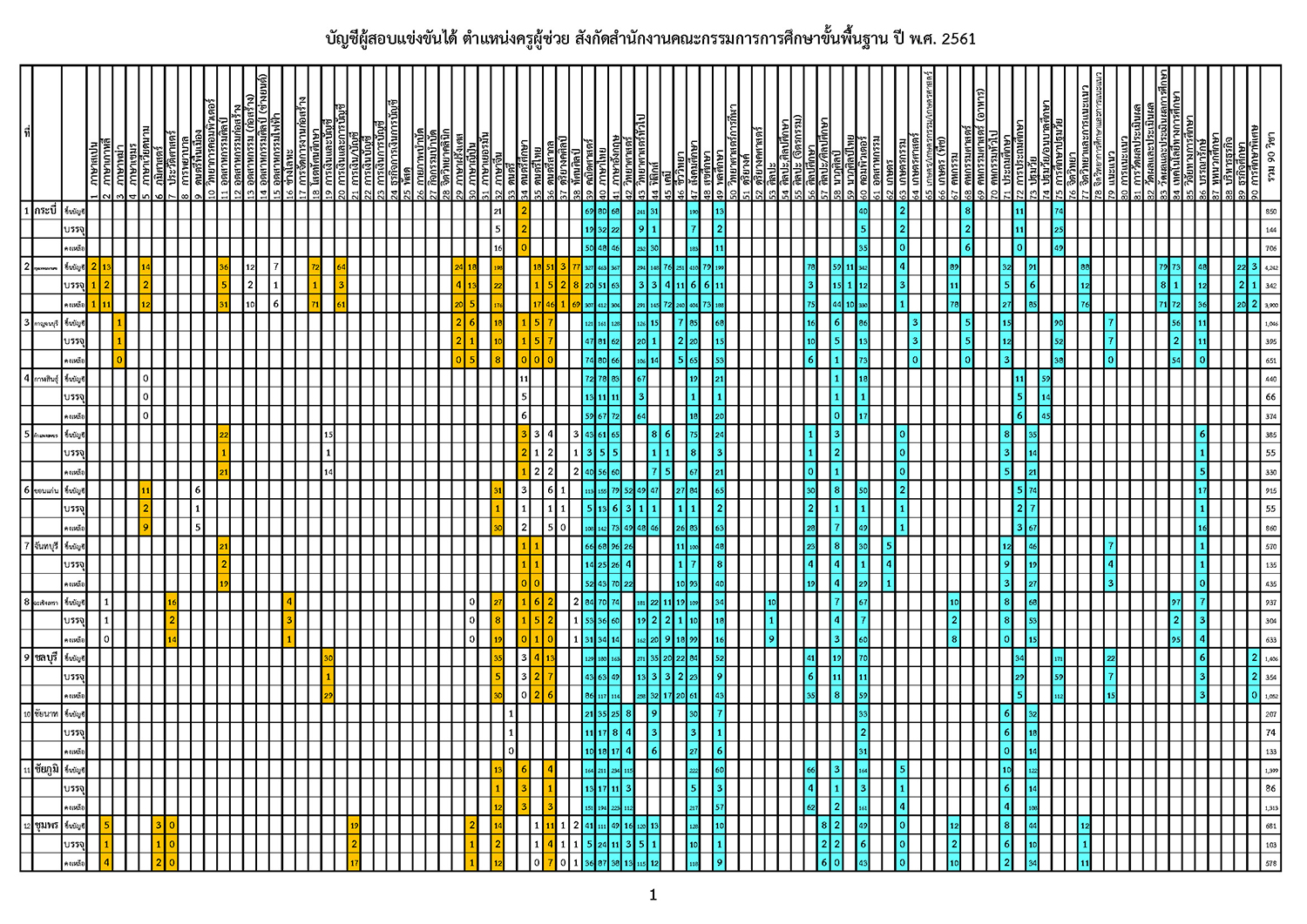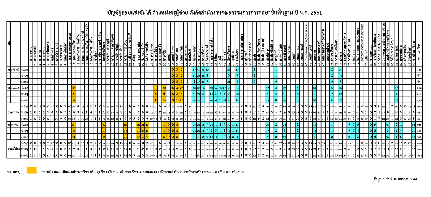 บัญชีผู้สอบแข่งขัน ตำแหน่งครูผู้ช่วย สังกัด สพฐ. ปี พ.ศ. 2561 (ข้อมูล ณ วันที่ 18 ธันวาคม 2561)