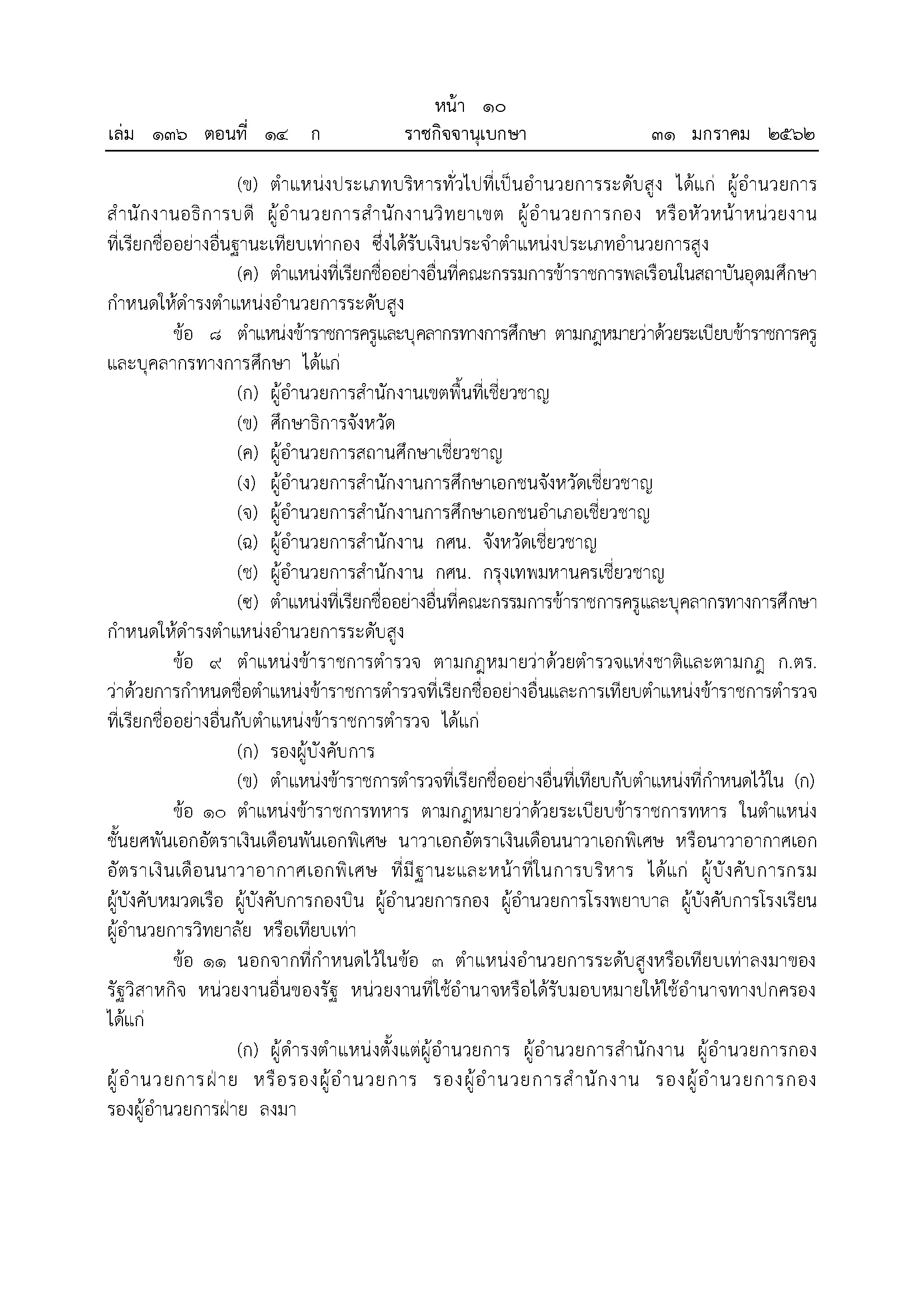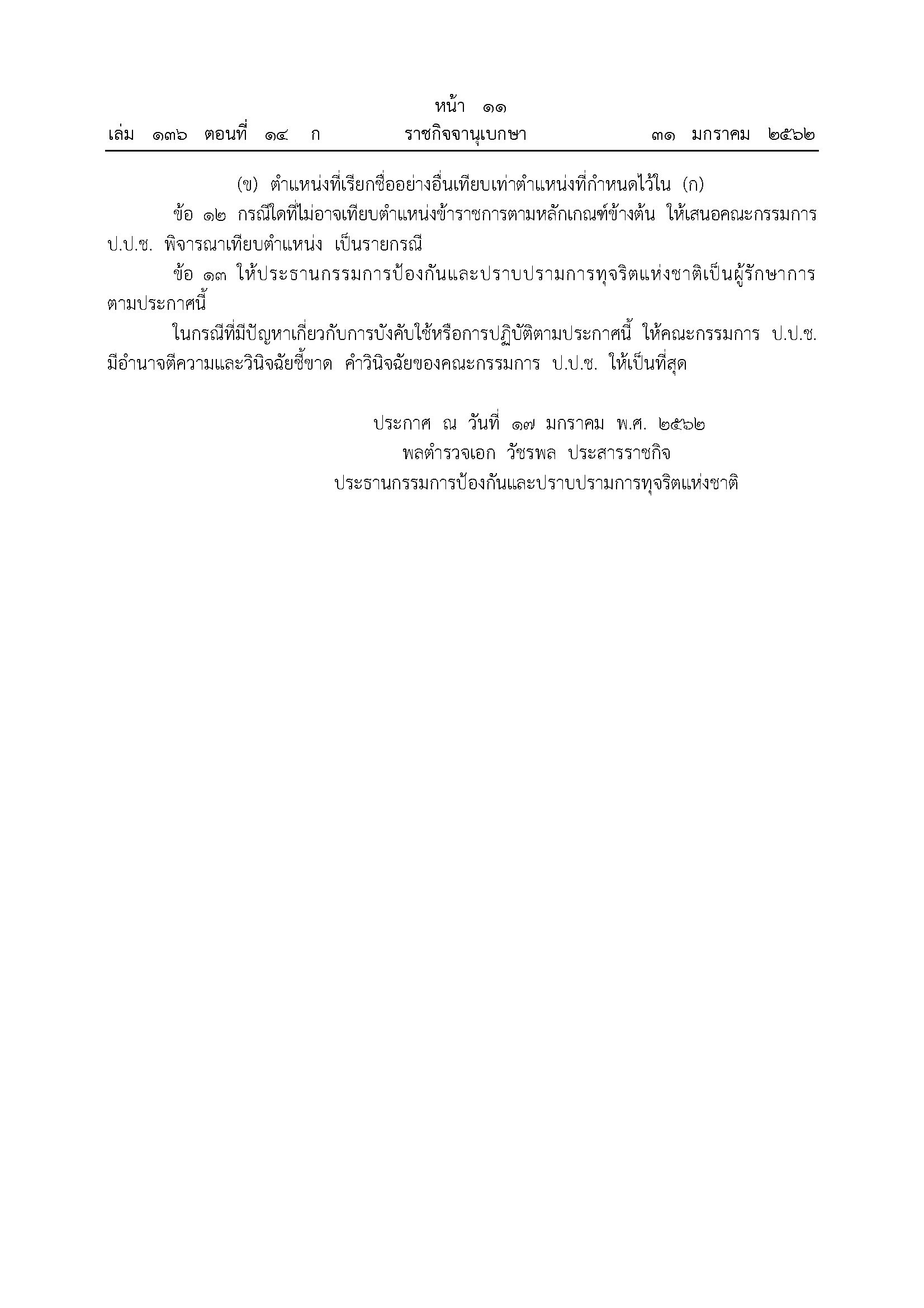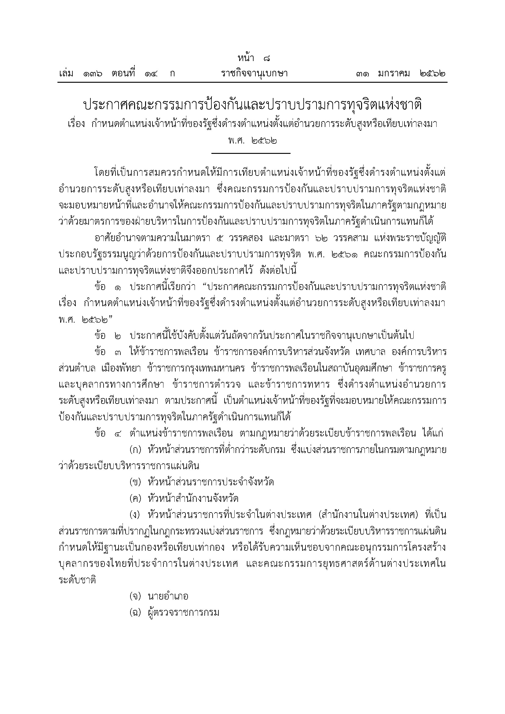 ที่มา เว็บไซต์ราชกิจจานุเบกษา วันที่ 31 มกราคม 2562