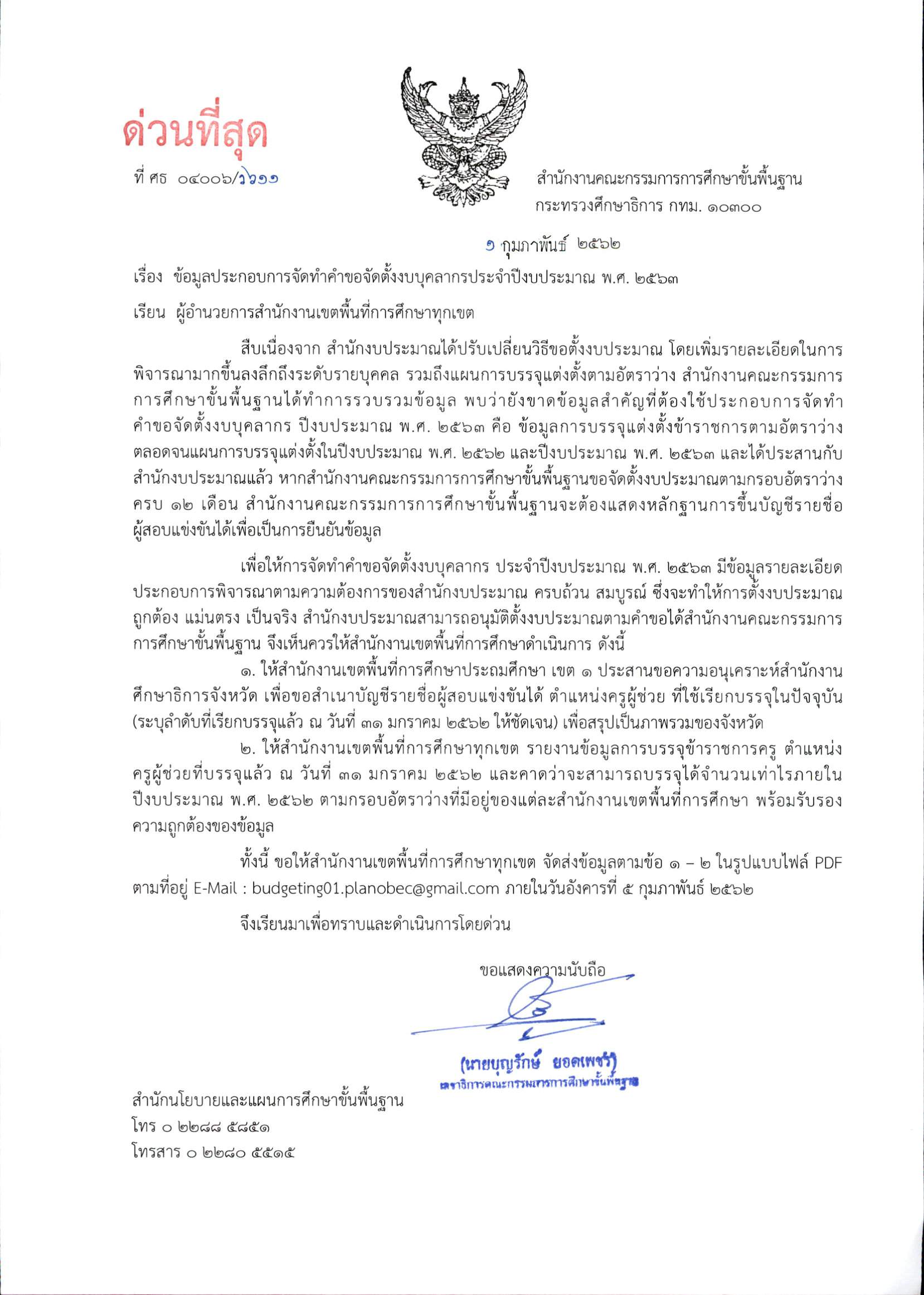ข้อมูลประกอบการจัดทำคำขอจัดตั้งงบบุคลากรประจำปีงบประมาณ พ.ศ. 2563