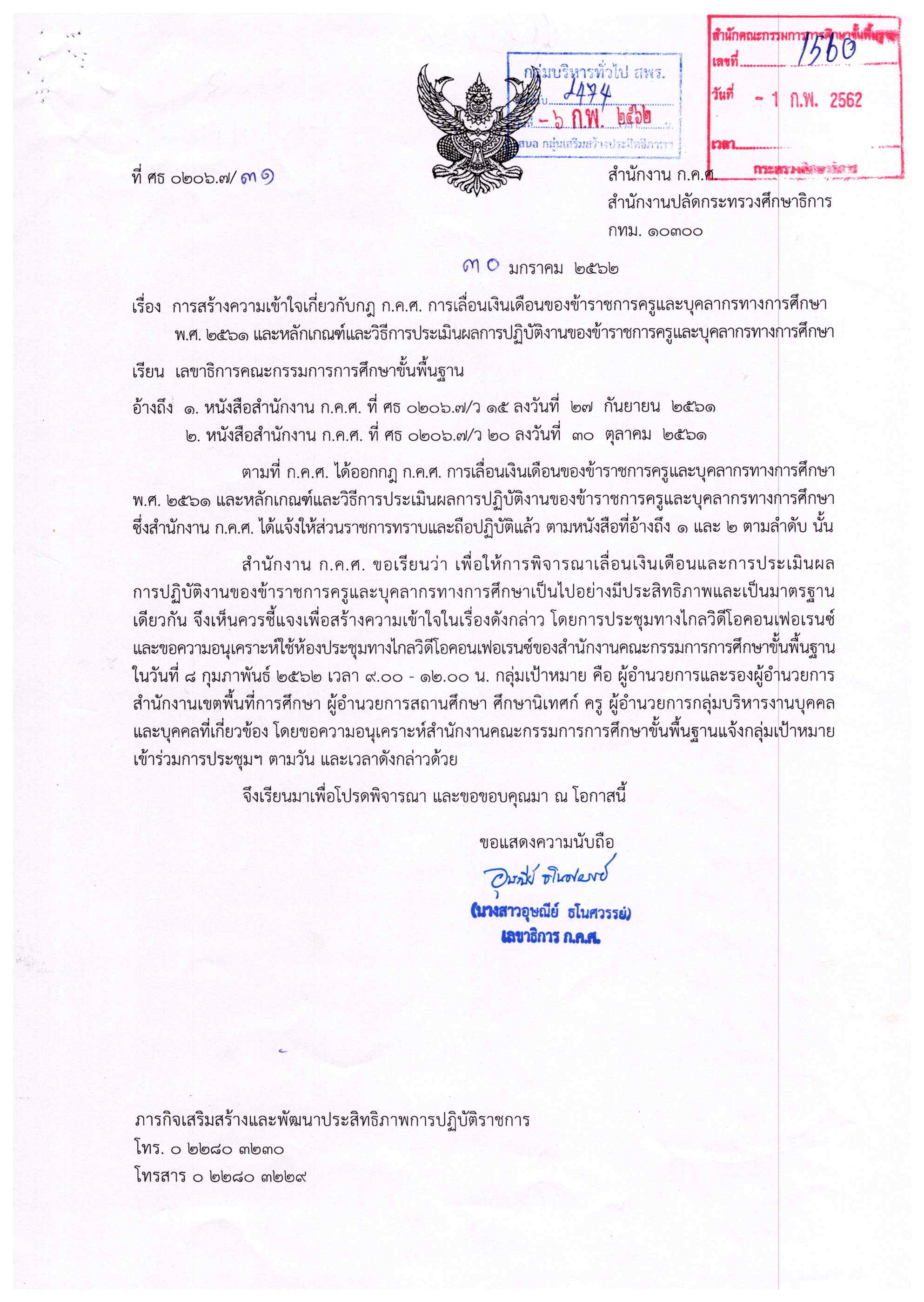 ที่ ศธ 04009/ว 777 เรื่อง การสร้างความเข้าใจเกี่ยวกับกฎ ก.ค.ศ. การเลื่อนเงินเดือนของข้าราชการครูและบุคลากรทางการศึกษา พ.ศ. 2561 และหลักเกณฑ์และวิธีการประเมินผลการปฏิบัติงานของข้าราชการครูและบุคลากรทางการศึกษา