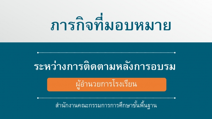 ภารกิจ 14 ข้อ ที่สำนักงานคณะกรรมการการศึกษาขั้นพื้นฐานมอบหมายระหว่างการติดตามหลังการอบรมผู้อำนวยการโรงเรียน ซึ่งผู้บริหารสถานศึกษารุ่นใหม่ต้องปฏิบัติ