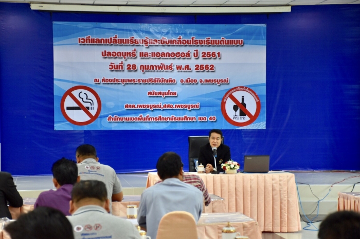 เมื่อเร็วๆนี้ สำนักงานเขตพื้นที่การศึกษามัธยมศึกษา เขต 40 ร่วมกับองค์กรงดเหล้าจังหวัดเพชรบูรณ์ และสำนักงานสาธารณสุขจังหวัดเพชรบูรณ์ จัดเวทีแลกเปลี่ยนเรียนรู้และขับเคลื่อนโรงเรียนต้นแบบปลอดบุหรี่และแอลกอฮอล์ ปี 2561 ให้กับครูผู้รับผิดชอบในสังกัด จำนวน 39 แห่ง และผู้เกี่ยวข้อง จำนวน 50 คน โดยมีมาตรการดำเนินงานดังนี้ มาตรการที่ 1. การกำหนดนโยบาย“โรงเรียนปลอดบุหรี่และแอลกอฮอล์” มาตรการที่ 2. การบริหารจัดการเพื่อโรงเรียนปลอดบุหรี่และแอลกอฮอล์ มาตรการที่ 3. การจัดสภาพแวดล้อมเพื่อ“โรงเรียนปลอดบุหรี่และแอลกอฮอล์” ตามกฎหมาย มาตรการที่ 4. การสอดแทรกเรื่องบุหรี่และแอลกอฮอล์ในการจัดการเรียนรู้ มาตรการที่ 5. การมีส่วนร่วมของนักเรียนเพื่อการขับเคลื่อน“โรงเรียนปลอดบุหรี่และแอลกอฮอล์” มาตรการที่ 6. การดูแลช่วยนักเรียนไม่ให้สูบบุหรี่และดื่มแอลกอฮอล์ มาตรการที่ 7. การมีกิจกรรมร่วมระหว่างโรงเรียนกับชุมชน โดยมีวัตถุประสงค์เพื่อให้โรงเรียนในสังกัด 39 แห่ง เตรียมความพร้อมรอรับการประเมิน เป็นโรงเรียนต้นแบบปลอดบุหรี่และแอลกอฮอล์ ได้ครบ 100% ทั้งนี้ได้รับเกียรติจากนายประทาน หาดยาว รองผู้อำนวยการสำนักงานเขตพื้นที่การศึกษามัธยมศึกษา เขต 40 รักษาราชการแทน ผู้อำนวยการสำนักงานเขตพื้นที่การศึกษามัธยมศึกษา เขต 40 เป็นประธานเปิดเวทีแลกเปลี่ยนเรียนรู้และขับเคลื่อนโรงเรียนต้นแบบปลอดบุหรี่และแอลกอฮอล์ ปี 2561 ณ ห้องประชุมพระราชปริยัติบัณฑิต สำนักงานเขตพื้นที่การศึกษามัธยมศึกษา เขต 40