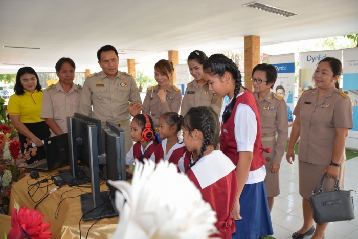 ทางด้าน นายวิทยา วิรารัตน์ กรรมการหอการค้าไทย และประธานสภาวัฒนธรรม จ.ศรีสะเกษ กล่าวว่า จ.ศรีสะเกษ ได้จัดสรรงบประมาณจำนวน 17 ล้านบาท เพื่อ “พลิกครูไทย สร้างเด็กไทย 4.0” และจัดตั้งเครือข่ายพัฒนาการเรียนการสอนภาษาอังกฤษแนวใหม่เป็นฐาน ซึ่งในยุคไทยแลนด์ 4.0 โดยเฉพาะอย่างยิ่งในอนาคต เรื่องภาษาที่ 2 คือ ภาษาอังกฤษ ถ้าเราไม่รู้ภาษาอังกฤษ เราจะไปประเทศเพื่อนบ้าน ก็จะเสียเปรียบเขา เขาฟังภาษาเราออก เพราะเขาดูทีวีเรา แต่เราไม่เคยฟังทีวีเขาเลย ยกตัวอย่าง ประเทศกัมพูชา เราไม่เคยฟังทีวีเขา ก็เลยพูดภาษากัมพูชาไม่ได้ แต่กัมพูชาฟังภาษาไทยได้ ก็เหมือนกับโปรแกรม DynED สื่อให้นักเรียนเข้าไปเรียน เข้าไปฟัง แล้วก็พูดตาม ฟังพูด ฟังพูด มันก็จะเข้าไปในสมอง จะออกเสียงเหมือนเจ้าของภาษาเลย นี่คือจุดดีของการเรียนโปรแกรม DynED เรียนติดต่อกันไปอย่างต่อเนื่อง เด็กก็จะสื่อสารภาษาอังกฤษได้กับเจ้าของภาษาโดยตรง และโปรแกรมนี้ยังสามารถประเมินผลได้ด้วยว่า เข้าไปเรียนอาทิตย์ละกี่ชั่วโมง ได้เรียนมั๊ย โปรแกรมก็จะสามารถตรวจสอบได้