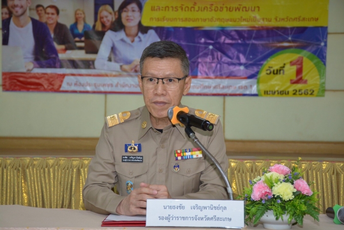 นายธงชัย เจริญพานิชย์กุล รอง ผวจ.ศรีสะเกษ กล่าวว่า การจัดเตรียมแสดงผลงาน Best Practice ในงาน “พลิกครูไทย สร้างเด็กไทย 4.0” และการจัดตั้งเครือข่ายพัฒนาการเรียนการสอนภาษาอังกฤษแนวใหม่เป็นฐาน จ.ศรีสะเกษ ในครั้งนี้ เป็นประโยชน์อย่างยิ่งต่อคุณภาพของผู้เรียน โดยเฉพาะอย่างยิ่งการส่งเสริมให้ผู้เรียนสามารถสื่อสารภาษาอังกฤษได้อย่างเป็นธรรมชาติ โดยใช้เครือข่ายพัฒนาการเรียนรู้เป็นฐานของ จ.ศรีสะเกษ เพราะปัจจุบันภาษาอังกฤษมีความสำคัญ และมีความจำเป็นเป็นอย่างมากในยุคปัจจุบัน อีกทั้ง เป็นการพัฒนาและส่งเสริมการสร้างเครือข่าย เพื่อแลกเปลี่ยนเรียนรู้ การส่งเสริมครูผู้สอนให้มีความรู้ ความสามารถในการจัดการเรียนรู้ รวมถึงการให้ความร่วมมือช่วยเหลือกันระหว่างโรงเรียนในกลุ่ม จ.ศรีสะเกษ เพื่อนำไปสู่การสร้างสรรค์ นวัตกรรมการจัดการเรียนการสอนอย่างมีประสิทธิภาพ สามารถสร้างเครือข่ายการเรียนรู้ให้เป็นต้นแบบการดำเนินงานในระดับประเทศต่อไป