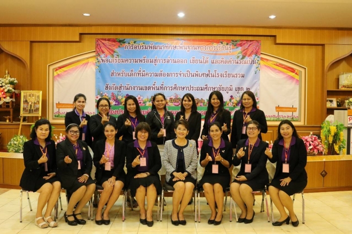 นางเทียนทอง ประทีบเมือง ศึกษานิเทศก์ หัวหน้ากลุ่มงานการศึกษาพิเศษ สพป.ชัยภูมิ เขต 2 กล่าวว่า การจัดอบรมครั้งนี้ มีวัตถุประสงค์เพื่อป้องกันภาวะเสี่ยงต่อปัญหาความบกพร่องทางการเรียนรู้และเตรียมความพร้อมให้กับนักเรียน ช่วยเหลือและแก้ไขปัญหารการอ่านออก เขียนได้ และคิดคำนวณของนักเรียนที่มีปัญหาความบกพร่องทางการเรียนรู้ รวมทั้งส่งเสริมให้ครูผู้สอนได้มีความรู้ ความเข้าใจสื่อที่เหมาะสมสำหรับการนำใช้จัดกิจกรรมการเรียนการสอนเพื่อพัฒนาทักษะพื้นฐานทางการเรียนรู้ของนักเรียนต่อไป