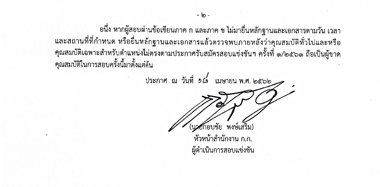 คลิกที่นี่เพื่ออ่าน ประกาศสำนักงานคณะกรรมการข้าราชการกรุงเทพมหานคร เรื่อง ผลการสอบข้อเขียน ภาค ก และ ภาค ข เพื่อบรรจุและแต่งตั้งบุคคลเข้ารับราชการเป็นข้าราชการครูและบุคลากรทางการศึกษากรุงเทพมหานคร ตำแหน่งครูผู้ช่วย ครั้งที่ 1/2561