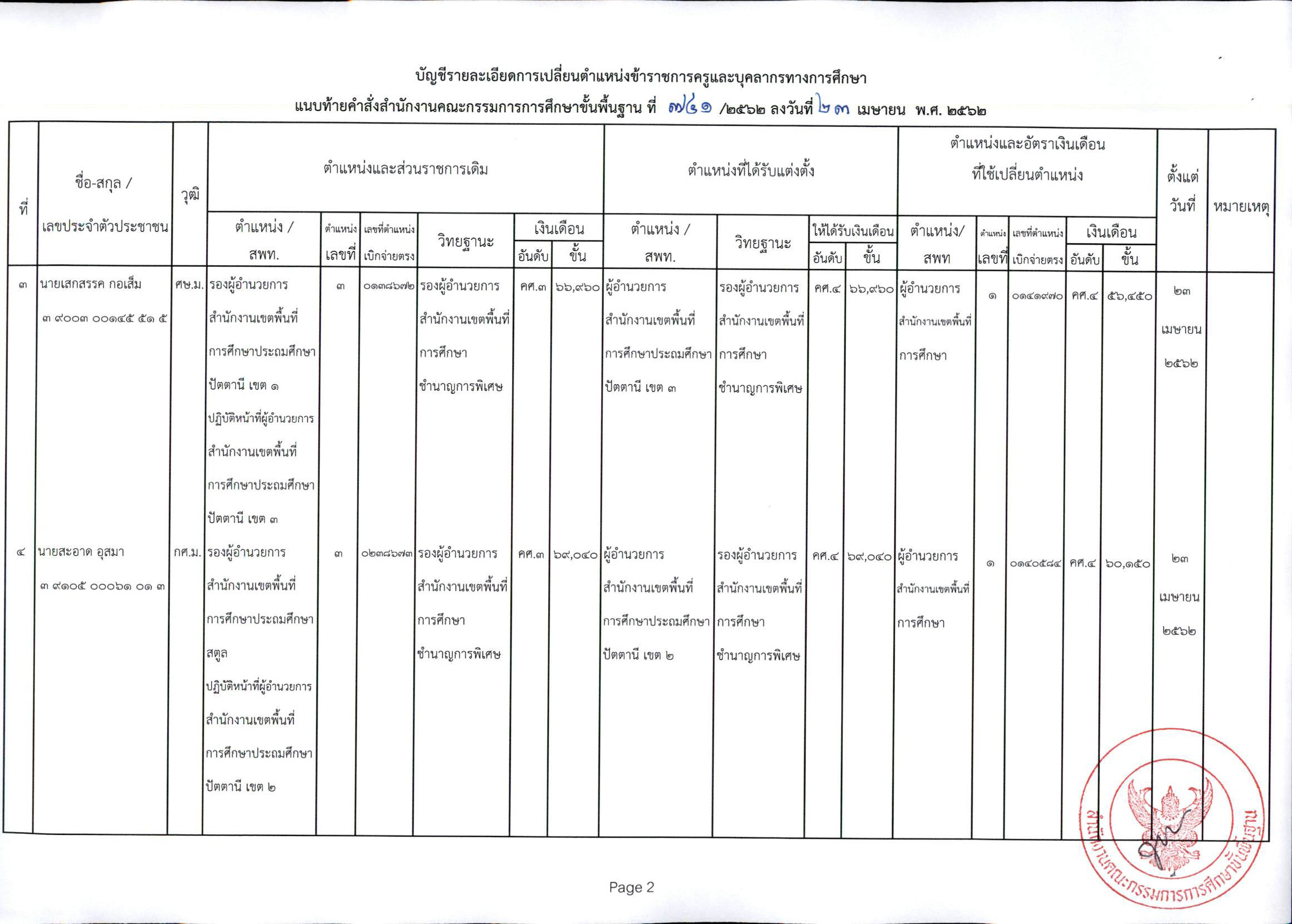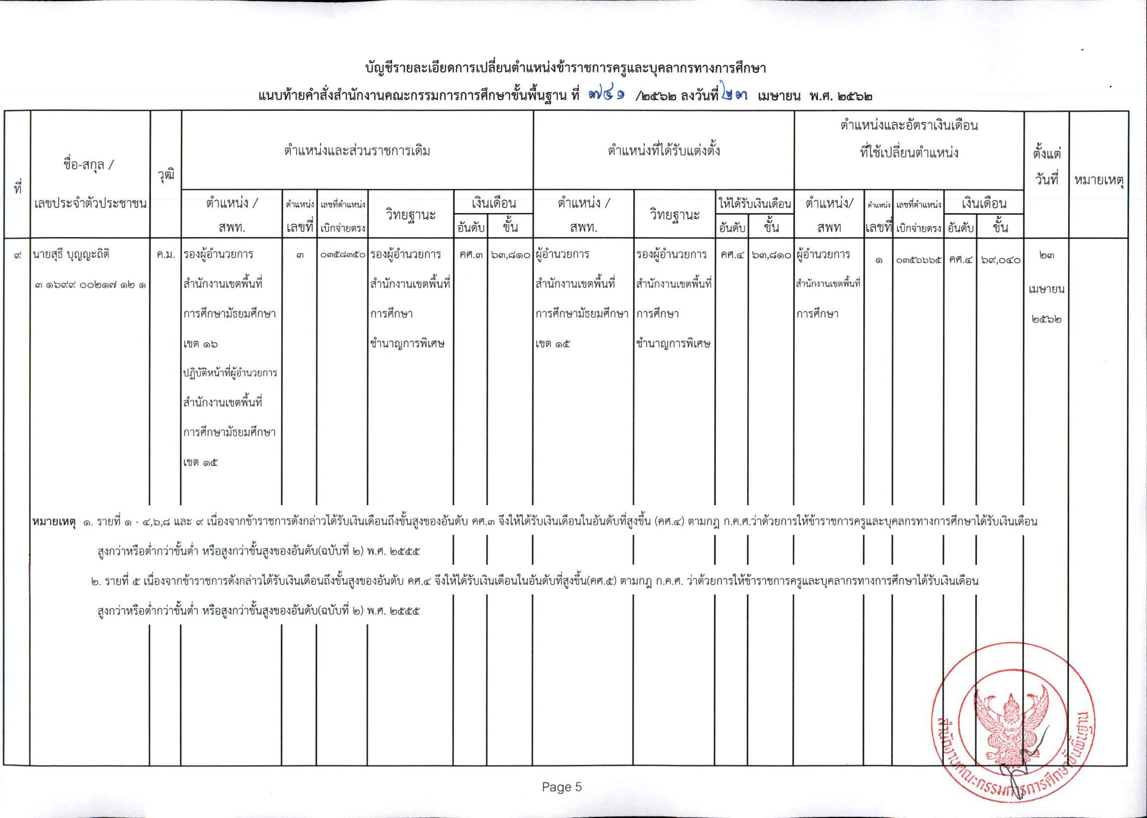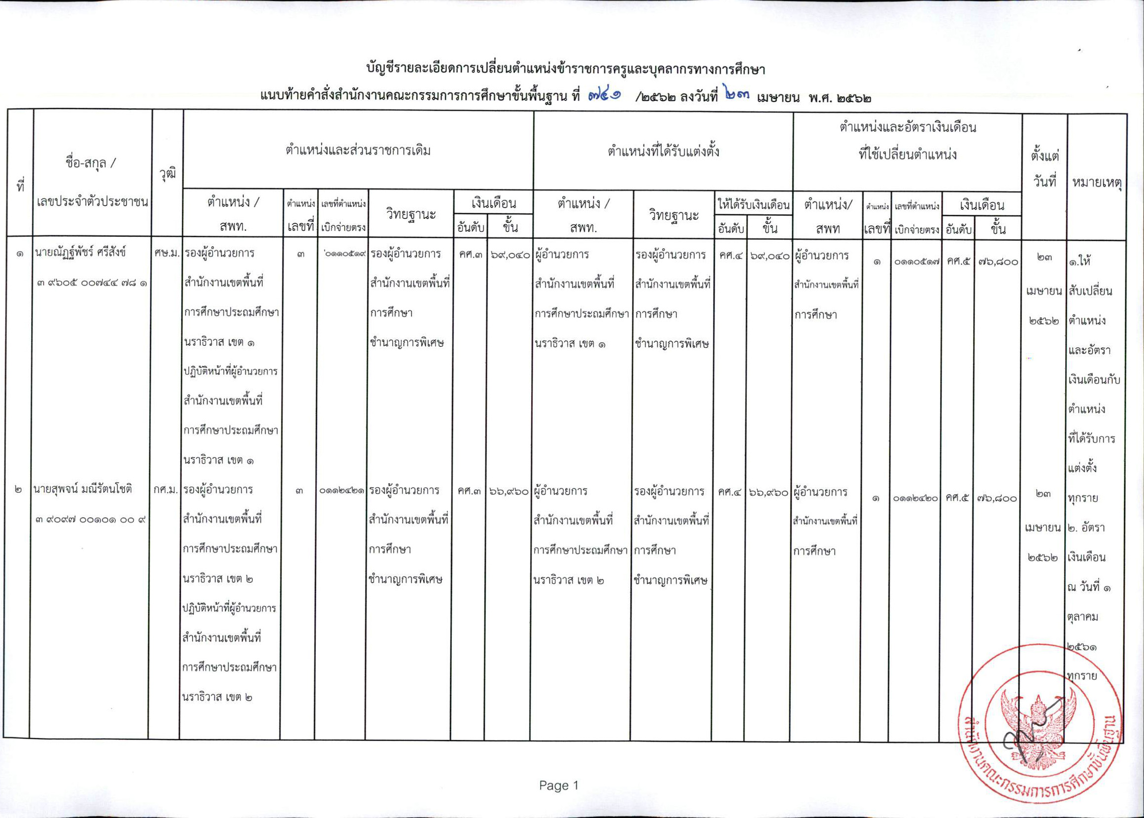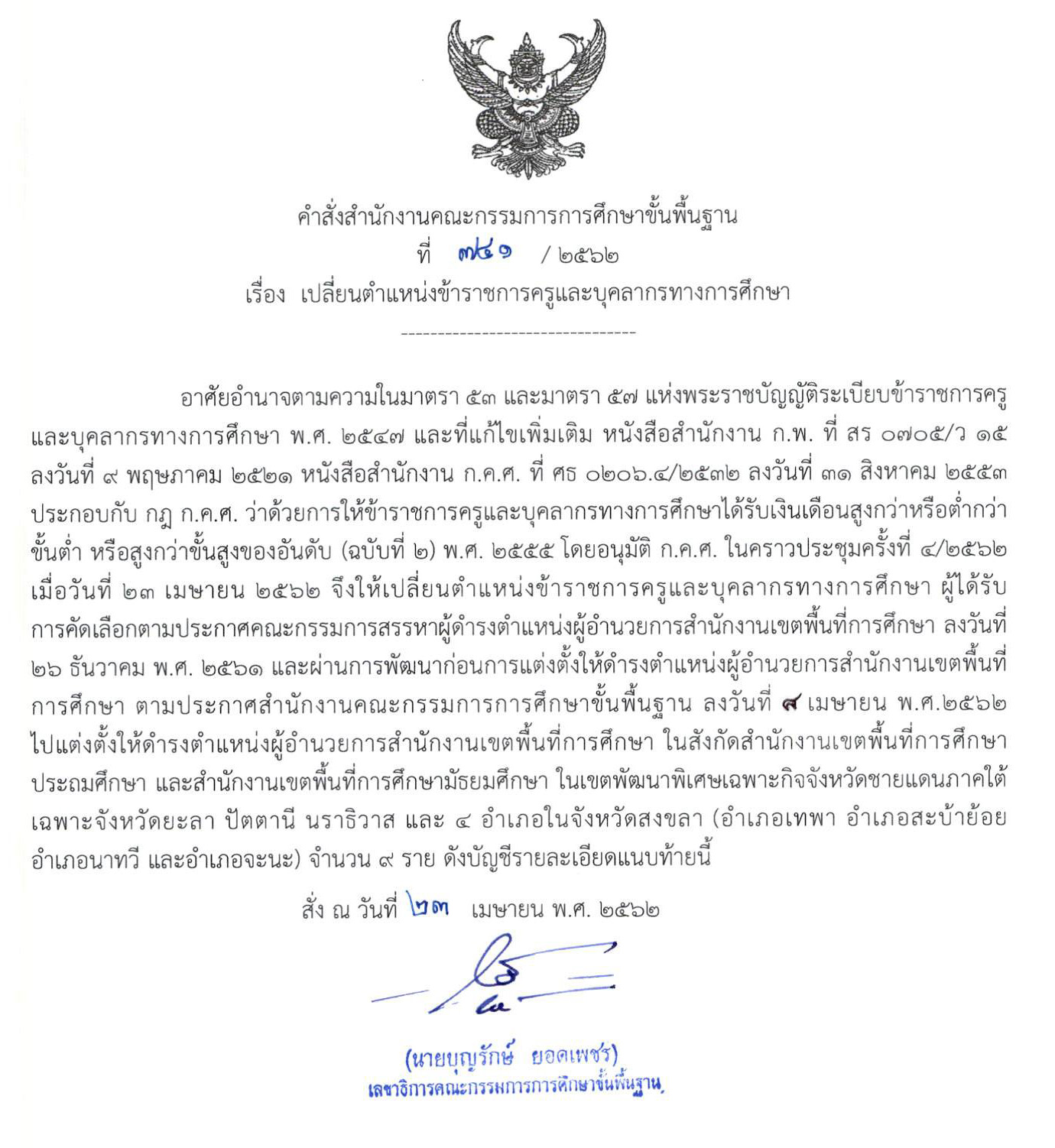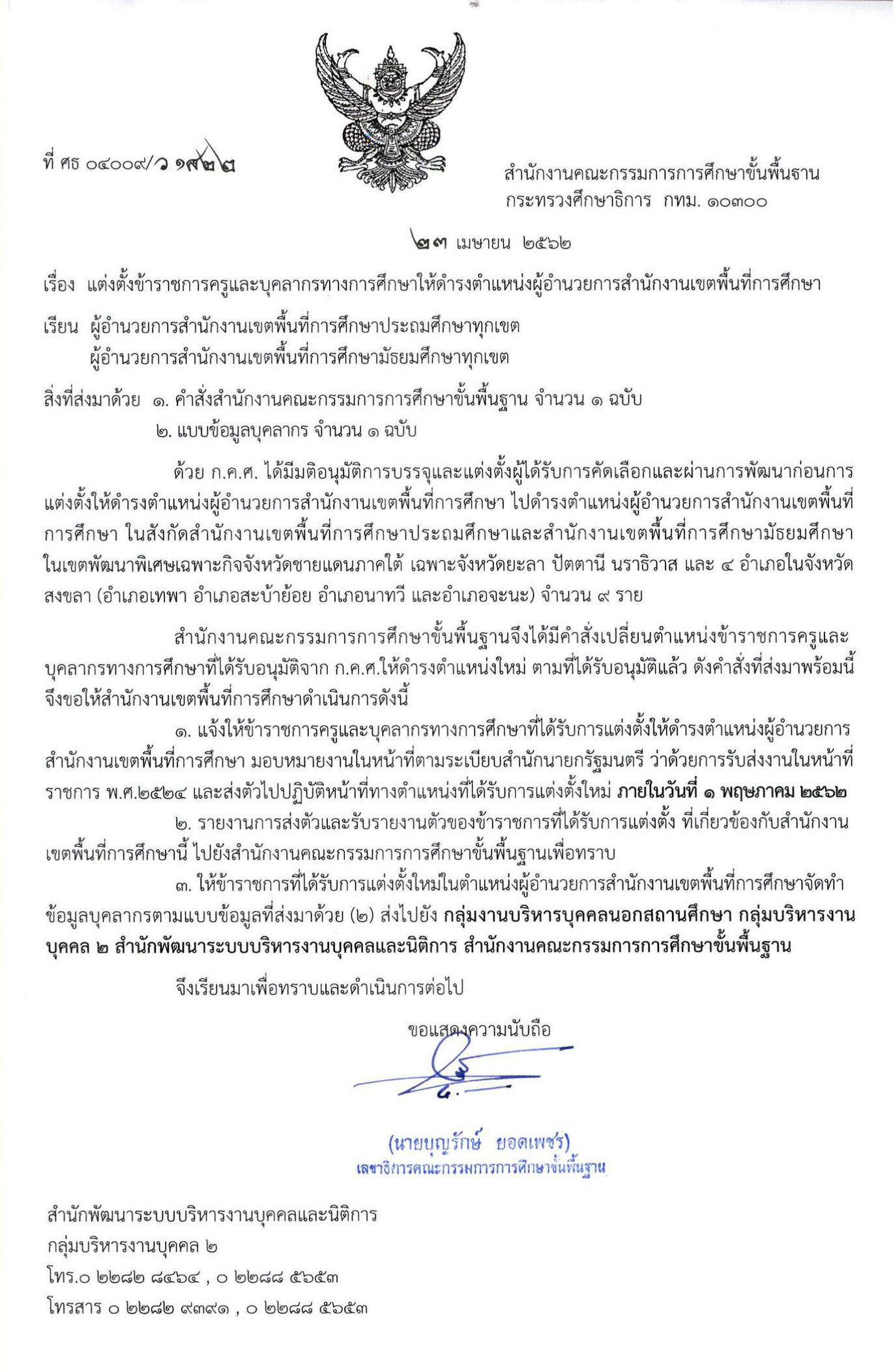 ที่ ศธ 04009/ว 1822 แต่งตั้งตั้งข้าราชการครูและบุคลากรทางการศึกษาให้ดำรงตำแหน่งผู้อำนวยการสำนักงานเขตพื้นที่การศึกษา